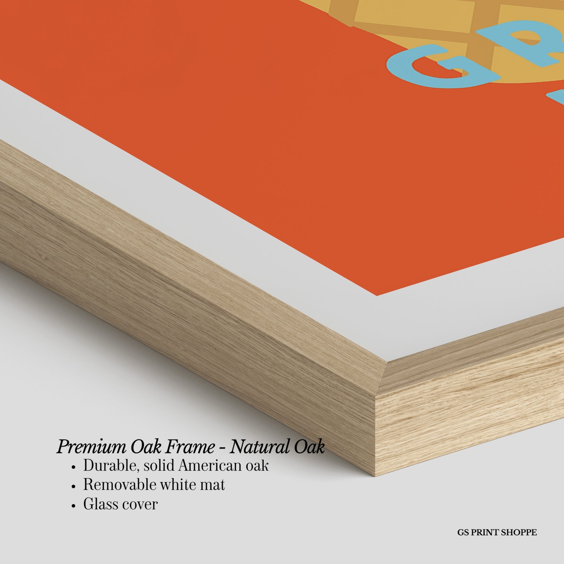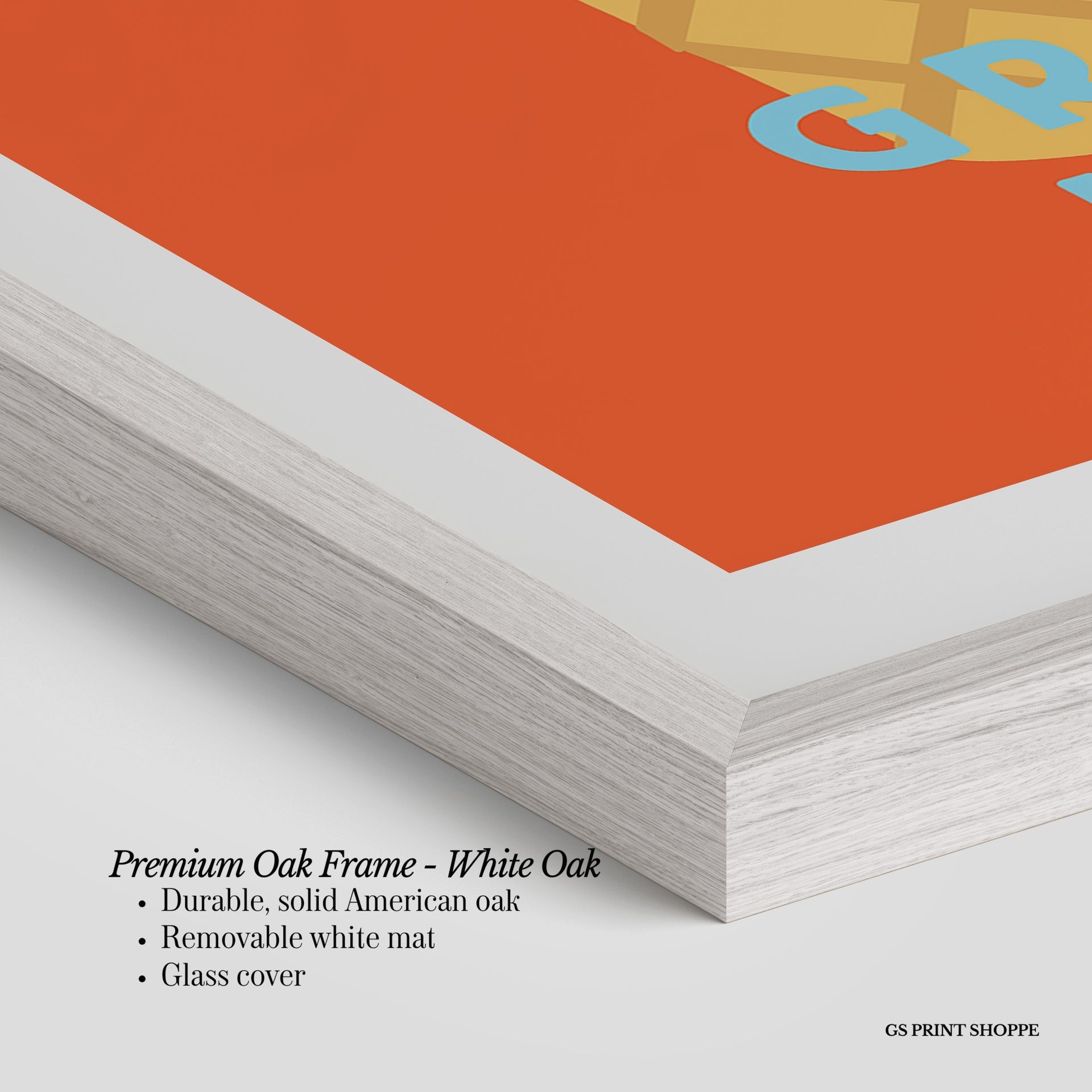 Premium Oak Frame: Our premium oak frame is crafted from solid American oak, offering a warm, natural feel with a high-end finish. We complete this elevated offering with a bright white removable mat and real glass for a versatile and polished look.