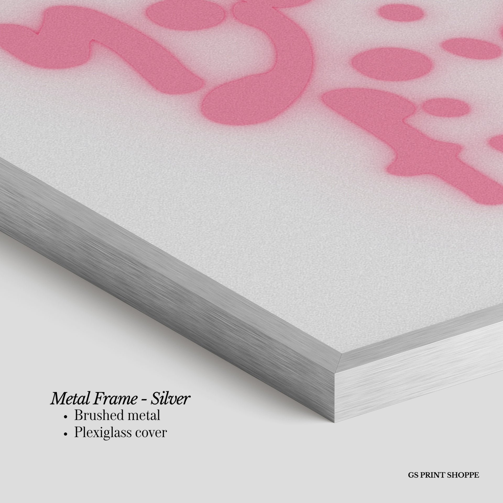 Metal Frame: Sleek and modern, our metal frame is crafted with brushed metal for a polished finish. It comes with durable plexiglass and sturdy metal hangers for horizontal or vertical display.