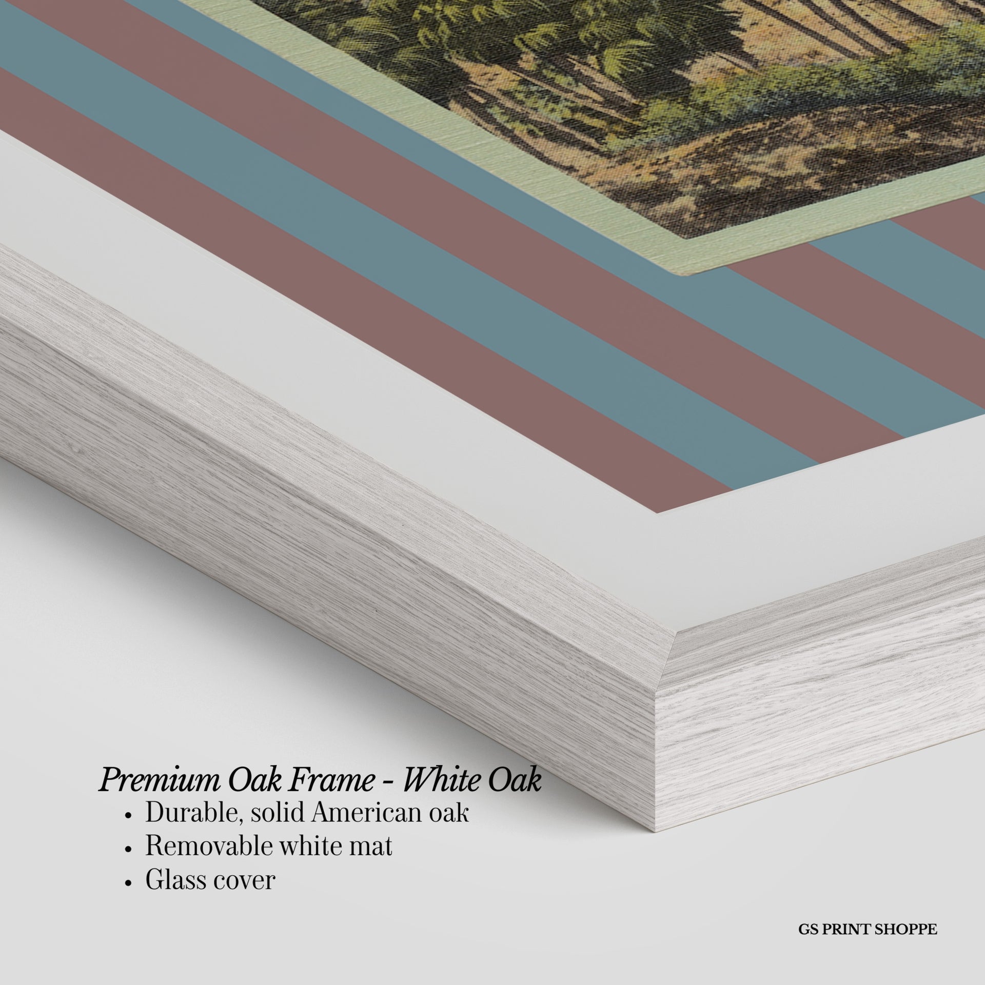 Premium Oak Frame: Our premium oak frame is crafted from solid American oak, offering a warm, natural feel with a high-end finish. We complete this elevated offering with a bright white removable mat and real glass for a versatile and polished look.