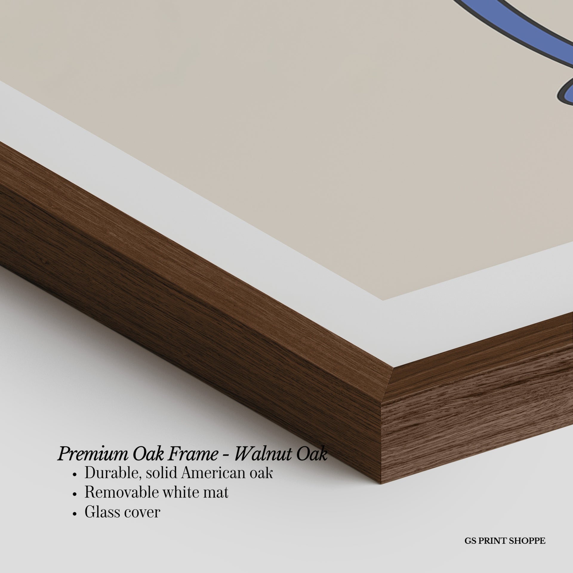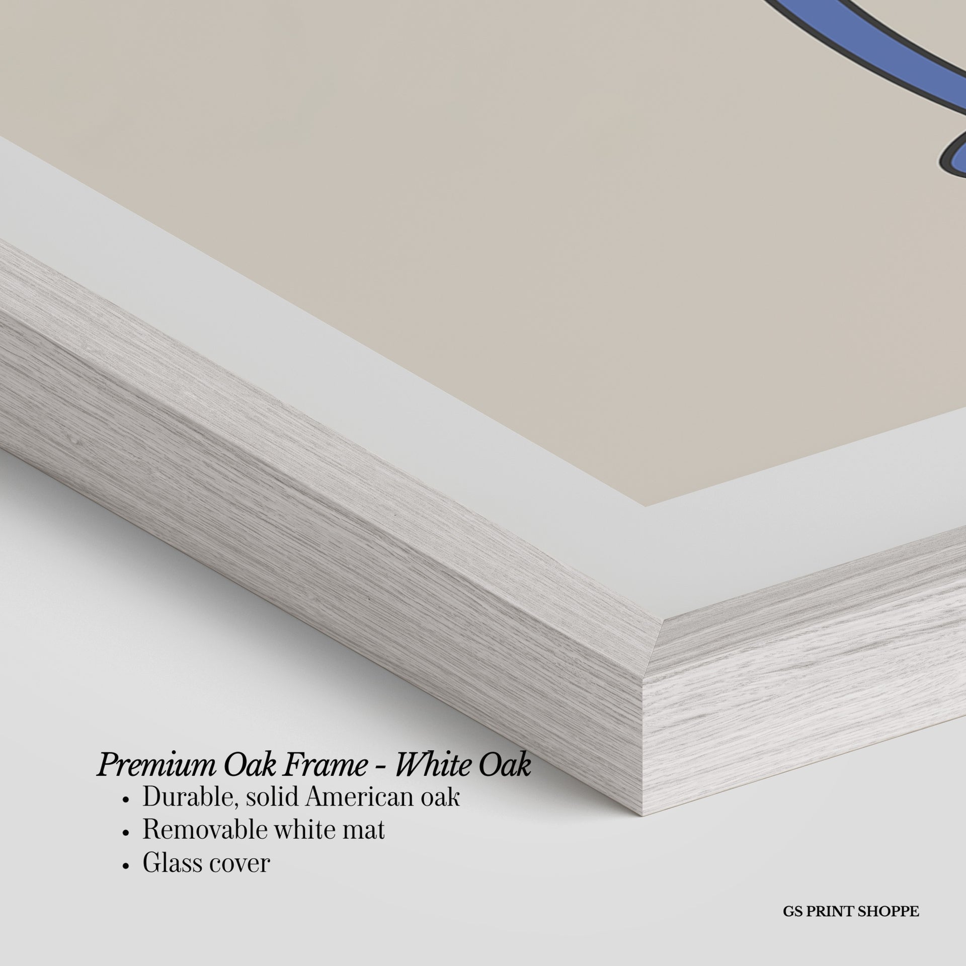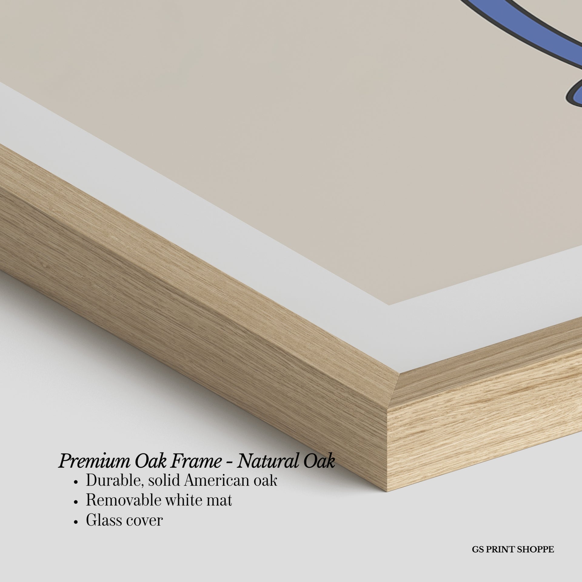 Premium Oak Frame: Our premium oak frame is crafted from solid American oak, offering a warm, natural feel with a high-end finish. We complete this elevated offering with a bright white removable mat and real glass for a versatile and polished look.