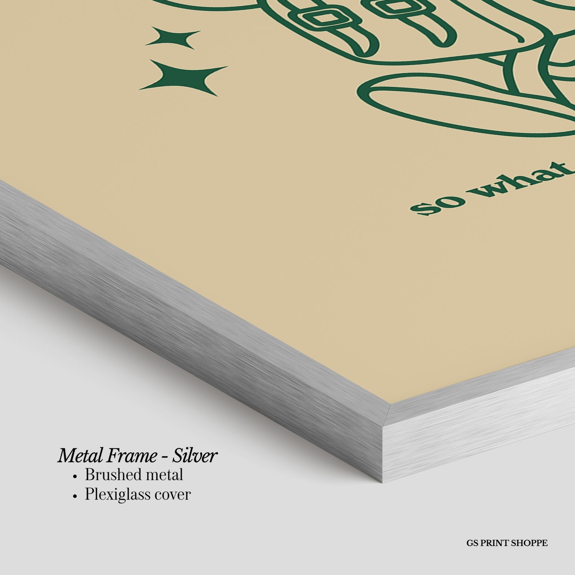 Metal Frame: Sleek and modern, our metal frame is crafted with brushed metal for a polished finish. It comes with durable plexiglass and sturdy metal hangers for horizontal or vertical display.