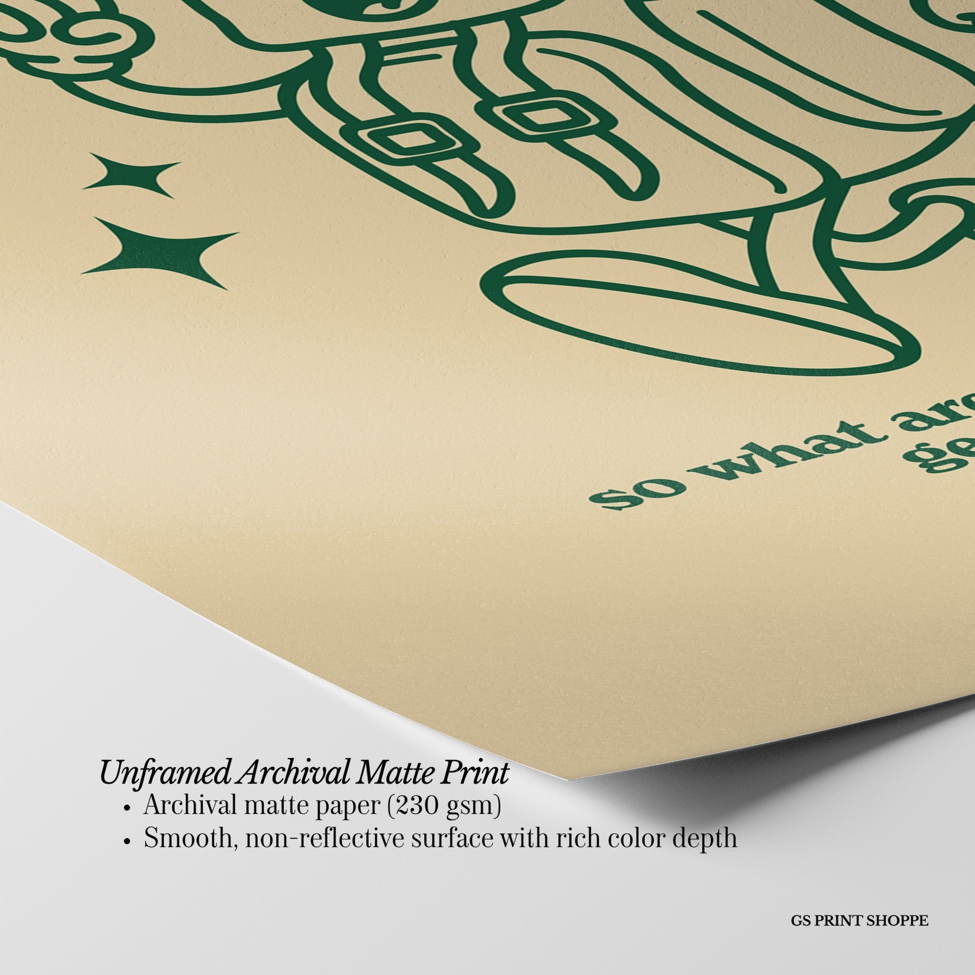 Unframed: This print is professionally printed on archival matte paper (230 gsm), a smooth, acid-free paper with a non-reflective finish. It will be carefully packaged to arrive safely at your door.