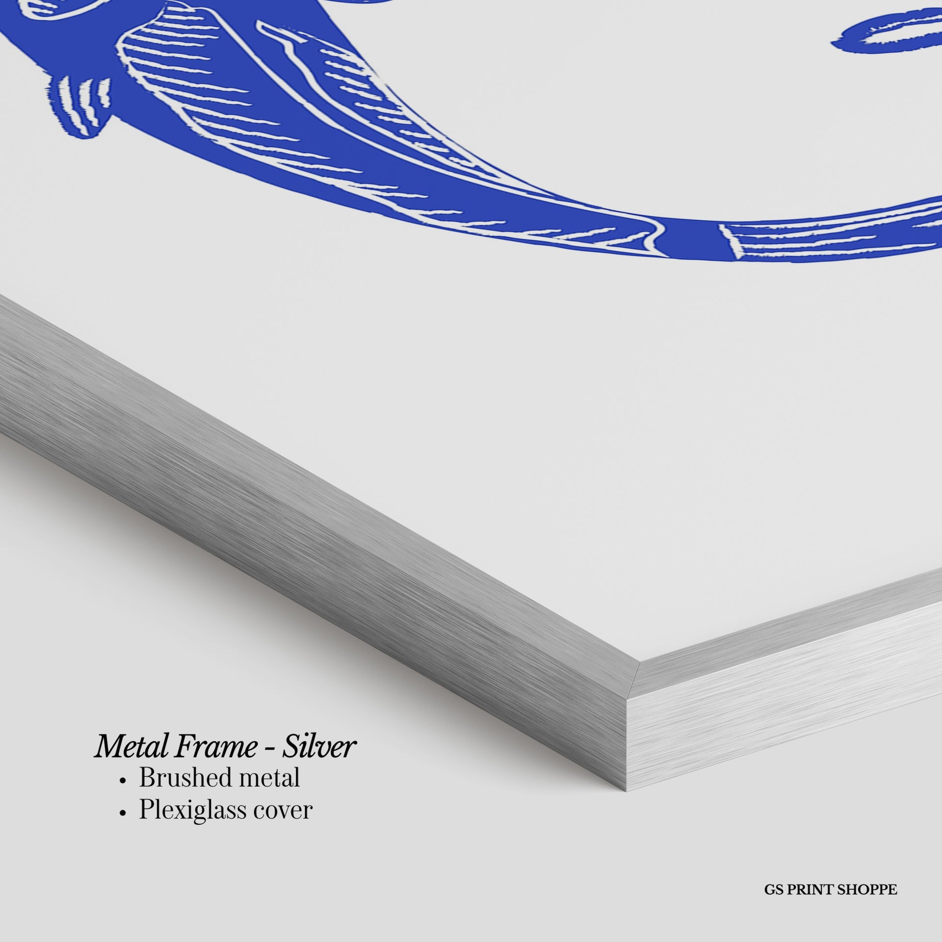Metal Frame: Sleek and modern, our metal frame is crafted with brushed metal for a polished finish. It comes with durable plexiglass and sturdy metal hangers for horizontal or vertical display.