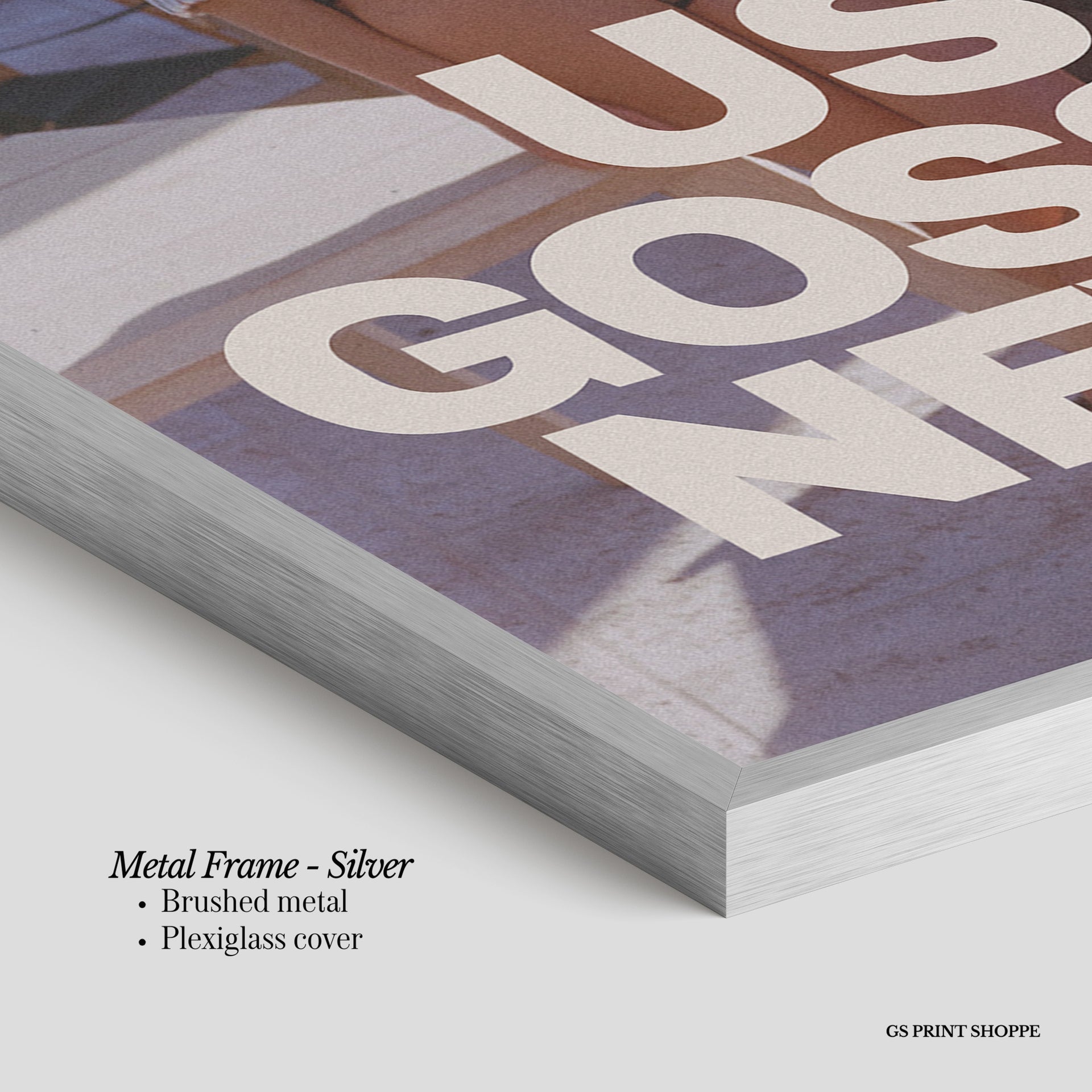 Metal Frame: Sleek and modern, our metal frame is crafted with brushed metal for a polished finish. It comes with durable plexiglass and sturdy metal hangers for horizontal or vertical display.
