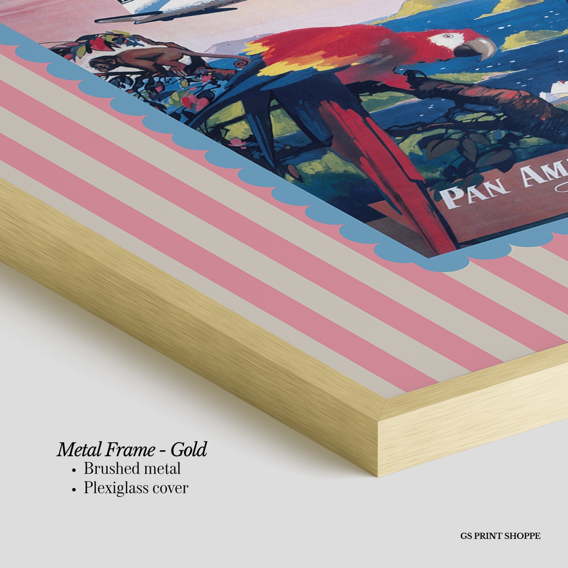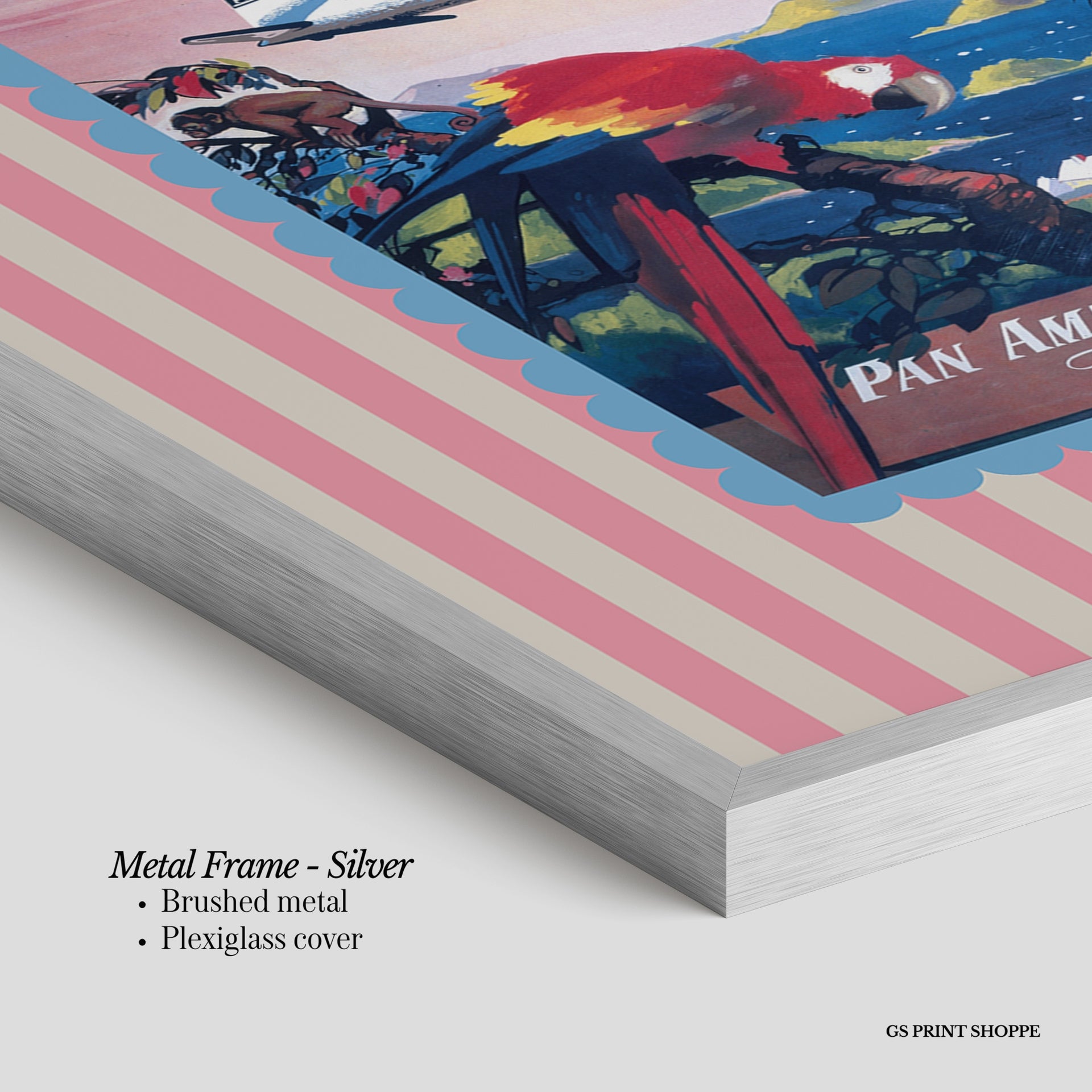 Metal Frame: Sleek and modern, our metal frame is crafted with brushed metal for a polished finish. It comes with durable plexiglass and sturdy metal hangers for horizontal or vertical display.