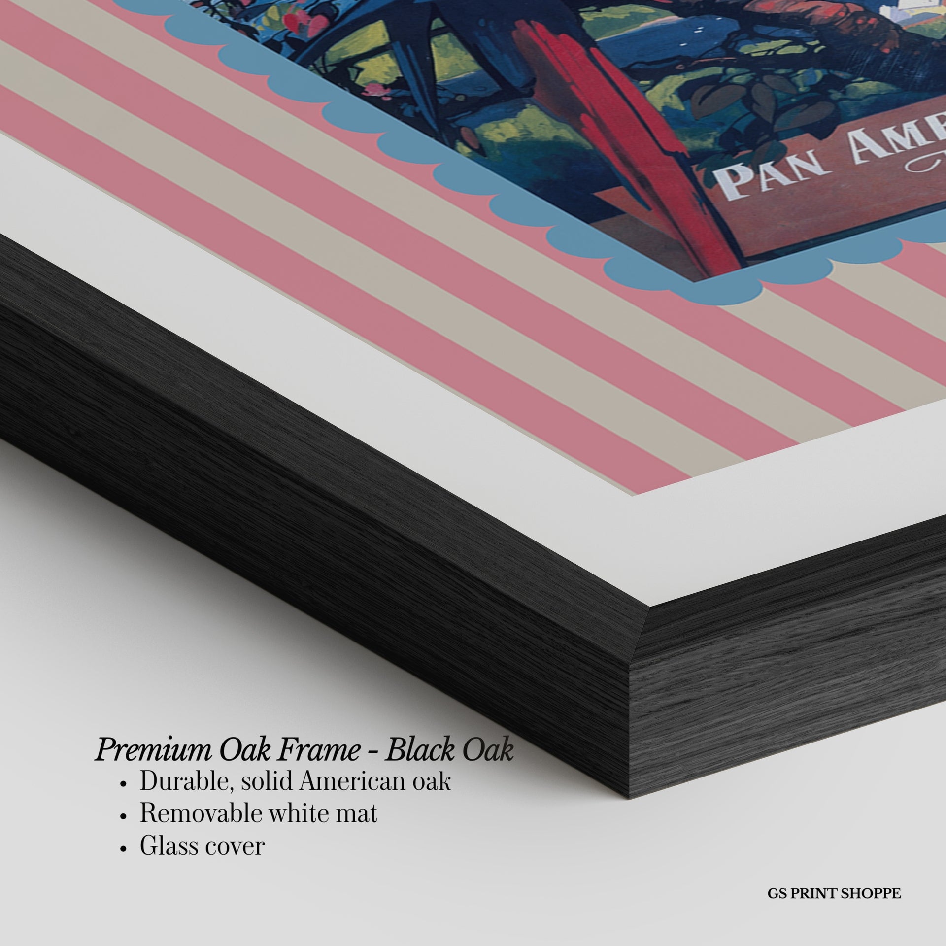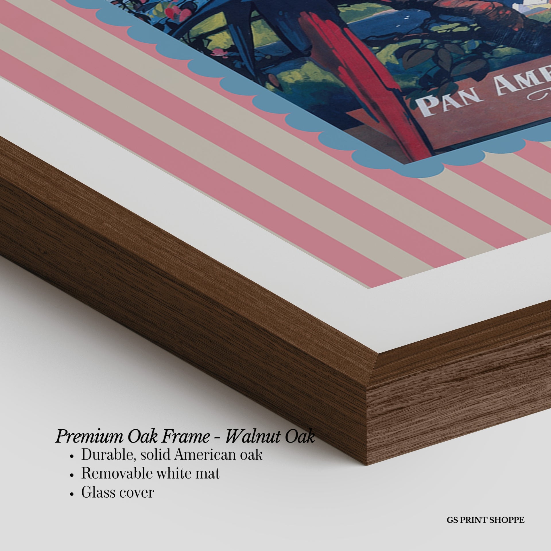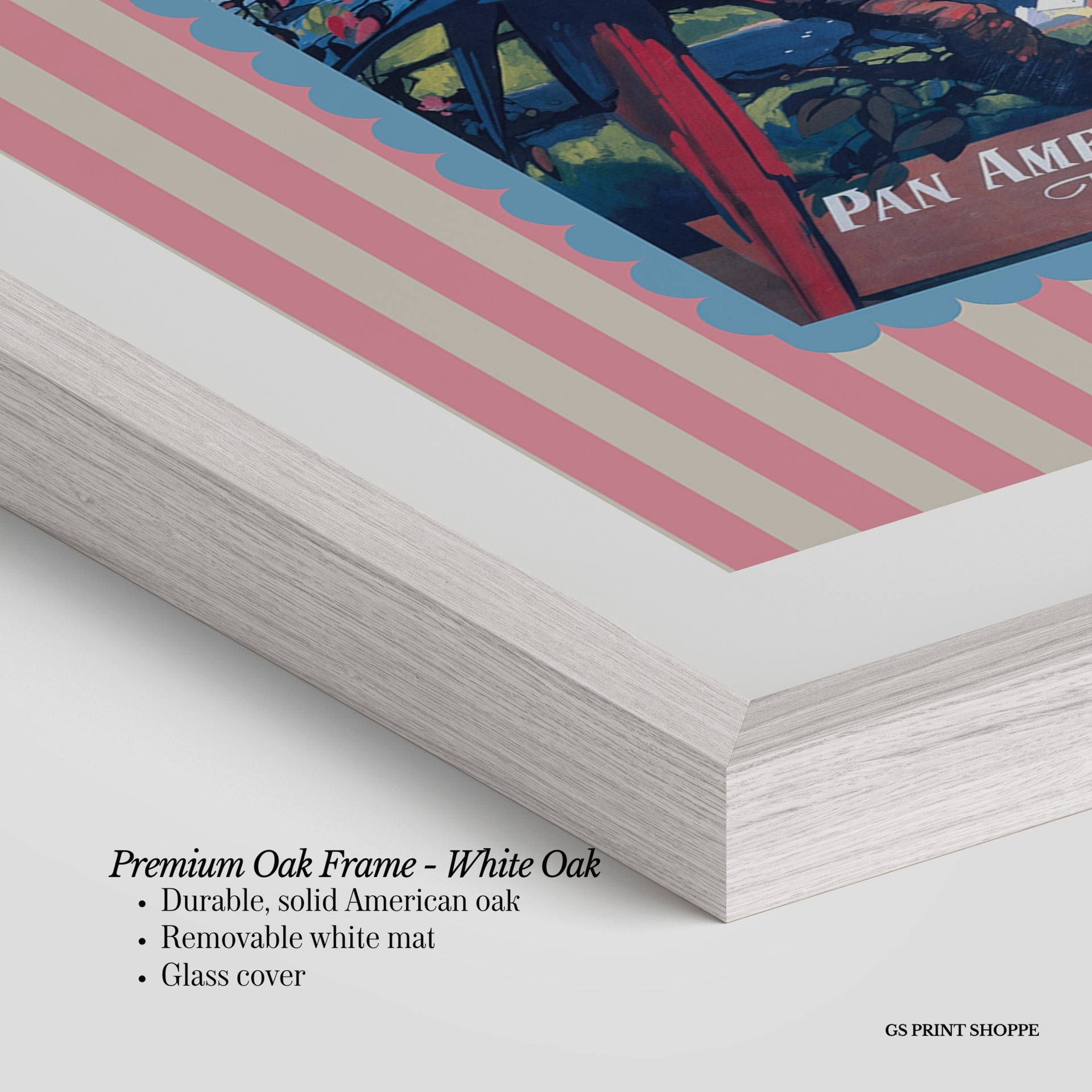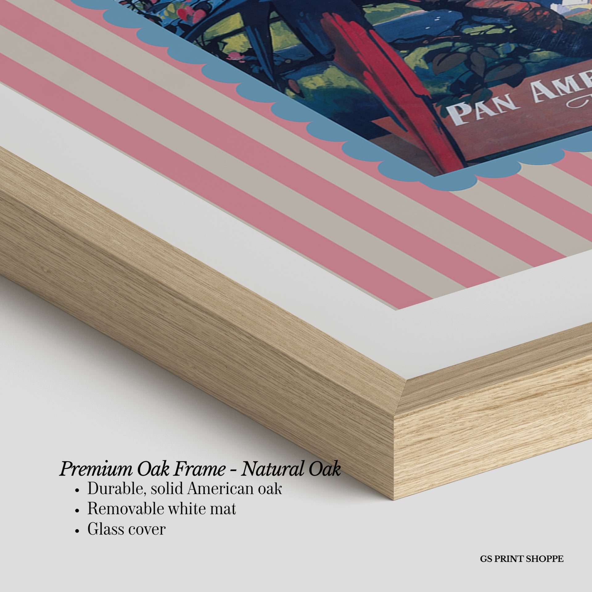 Premium Oak Frame: Our premium oak frame is crafted from solid American oak, offering a warm, natural feel with a high-end finish. We complete this elevated offering with a bright white removable mat and real glass for a versatile and polished look.