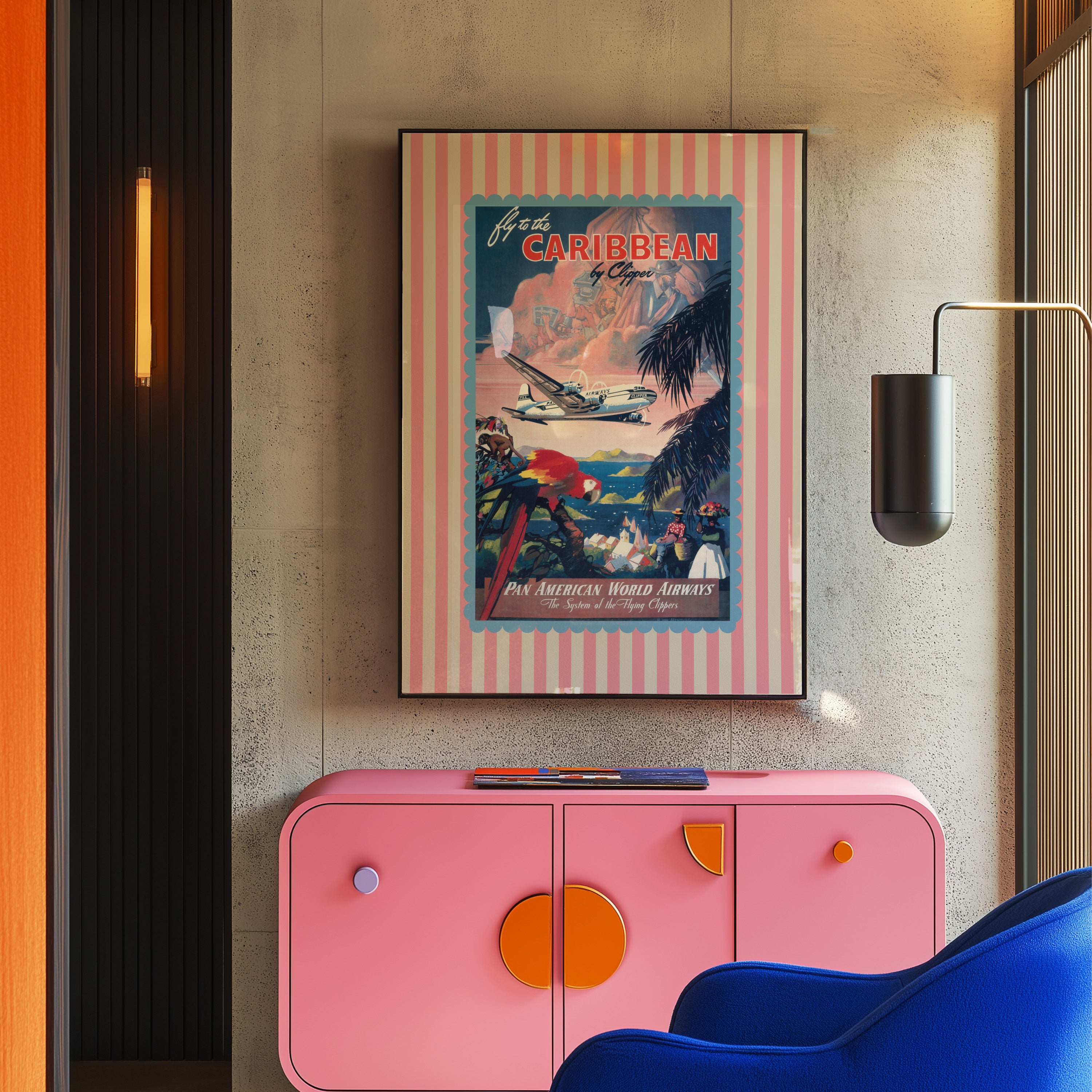 Caribbean Pan Am Vintage Travel Vertical Art Print