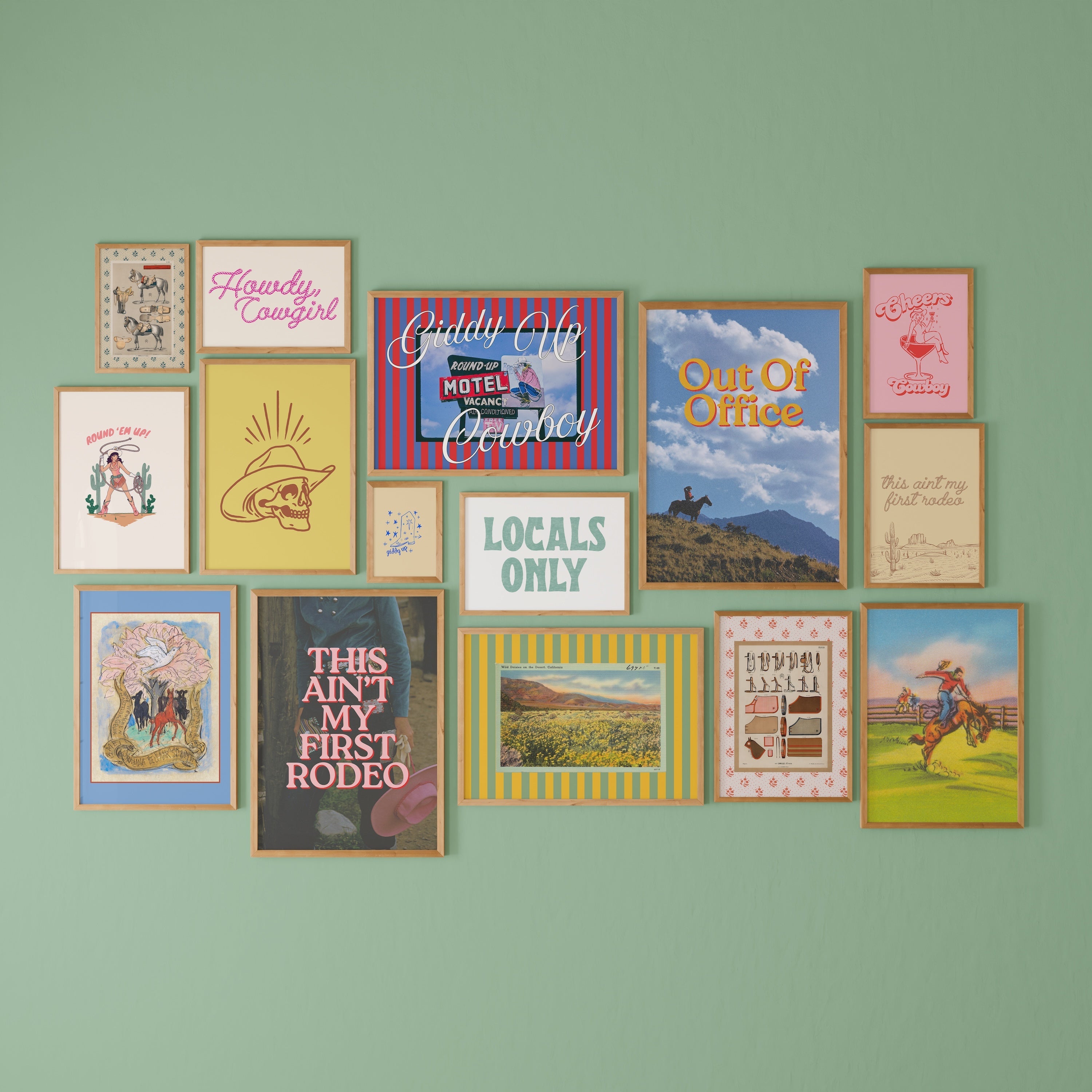 Gallery Wall Set of 15 Western Themed Digital Art Prints