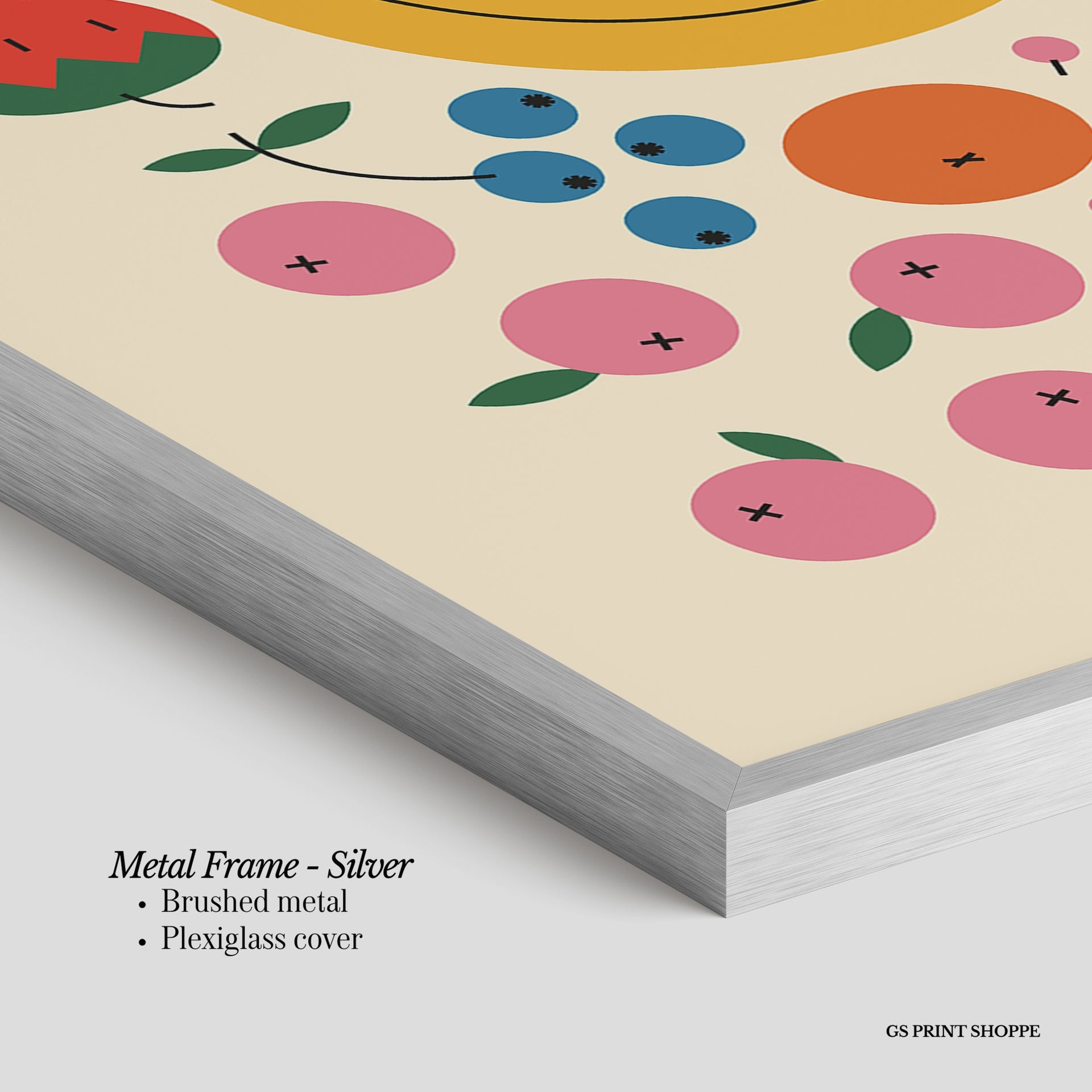Metal Frame: Sleek and modern, our metal frame is crafted with brushed metal for a polished finish. It comes with durable plexiglass and sturdy metal hangers for horizontal or vertical display.