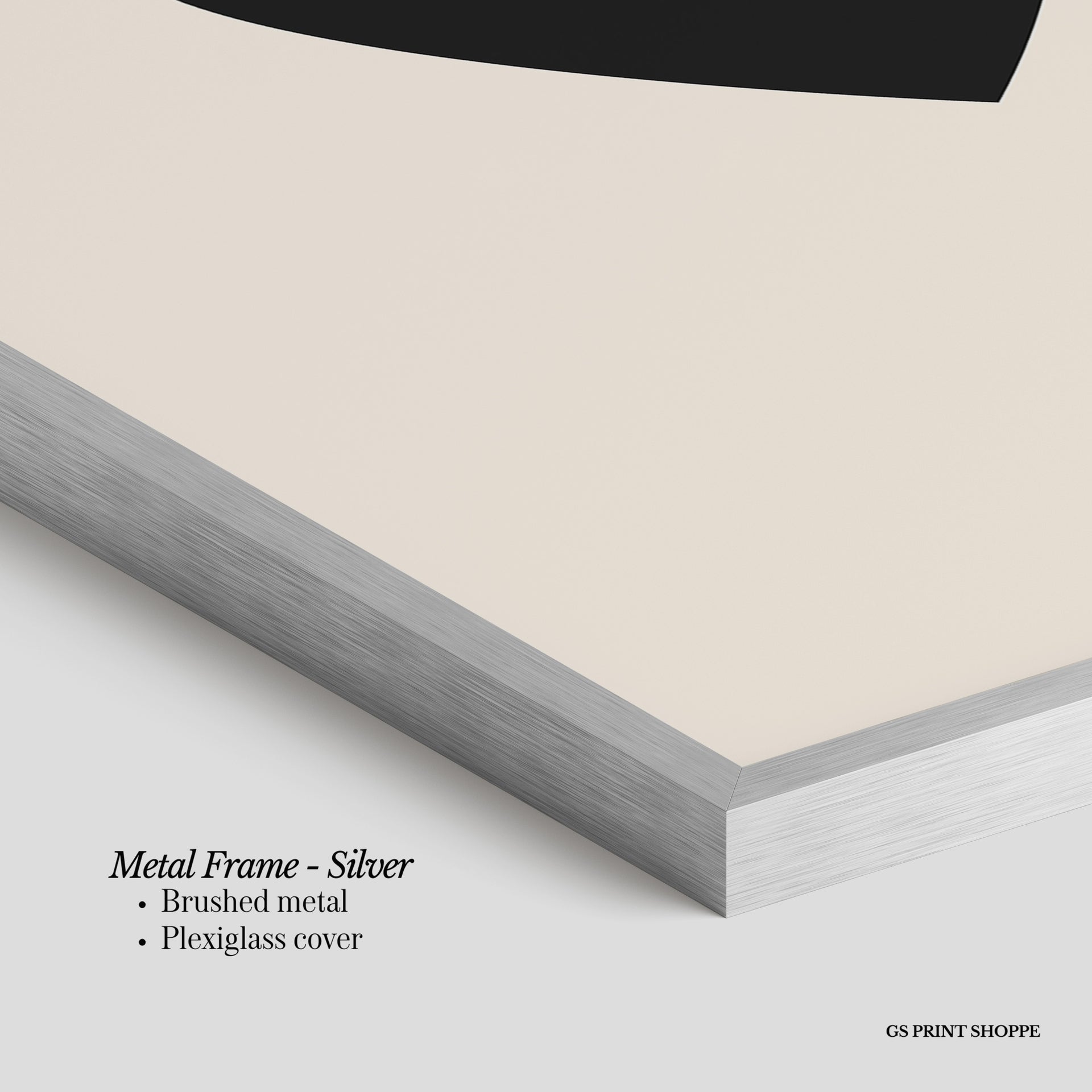 Metal Frame: Sleek and modern, our metal frame is crafted with brushed metal for a polished finish. It comes with durable plexiglass and sturdy metal hangers for horizontal or vertical display.