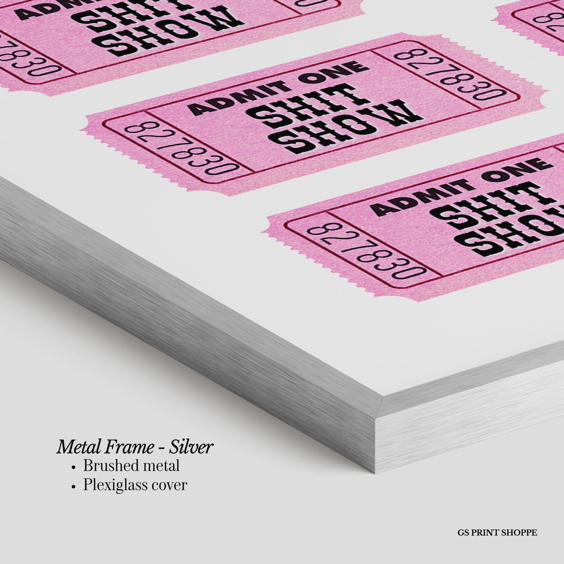 Metal Frame: Sleek and modern, our metal frame is crafted with brushed metal for a polished finish. It comes with durable plexiglass and sturdy metal hangers for horizontal or vertical display.
