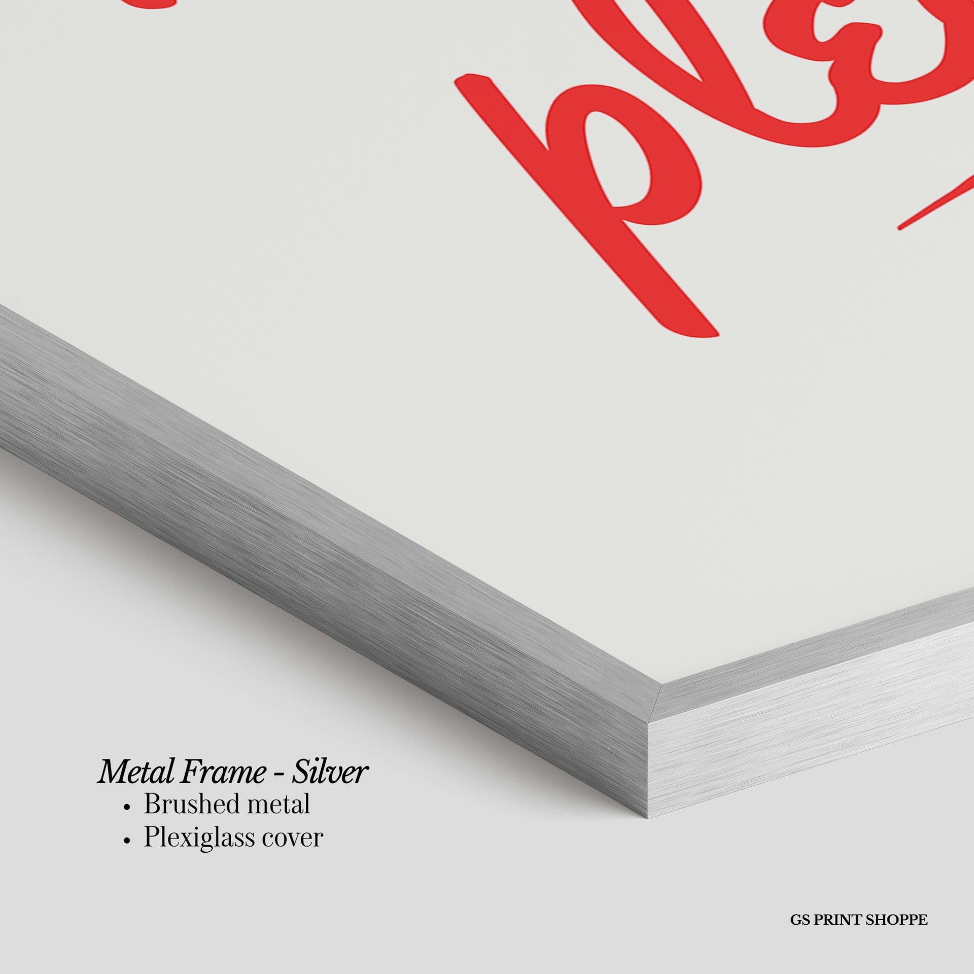 Metal Frame: Sleek and modern, our metal frame is crafted with brushed metal for a polished finish. It comes with durable plexiglass and sturdy metal hangers for horizontal or vertical display.