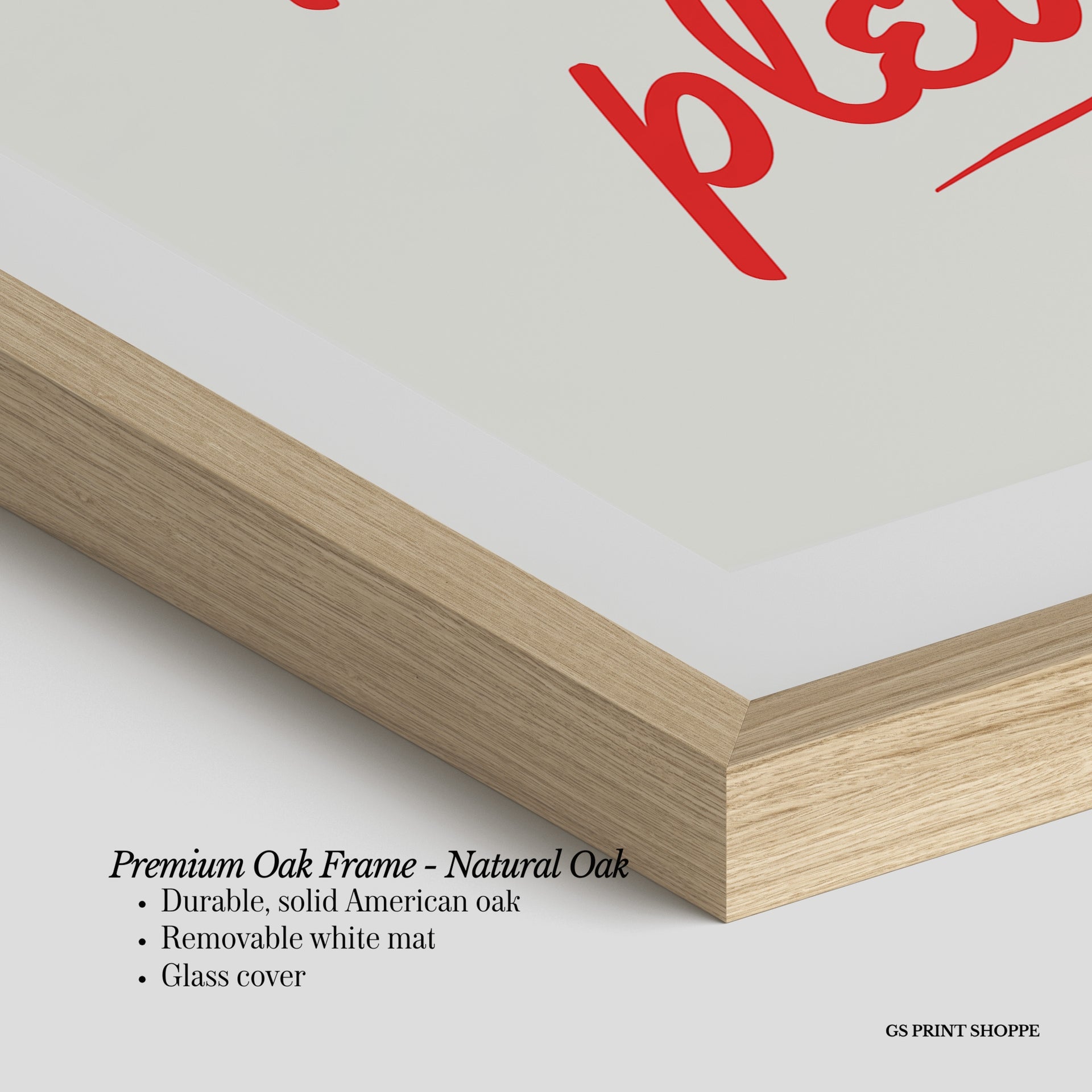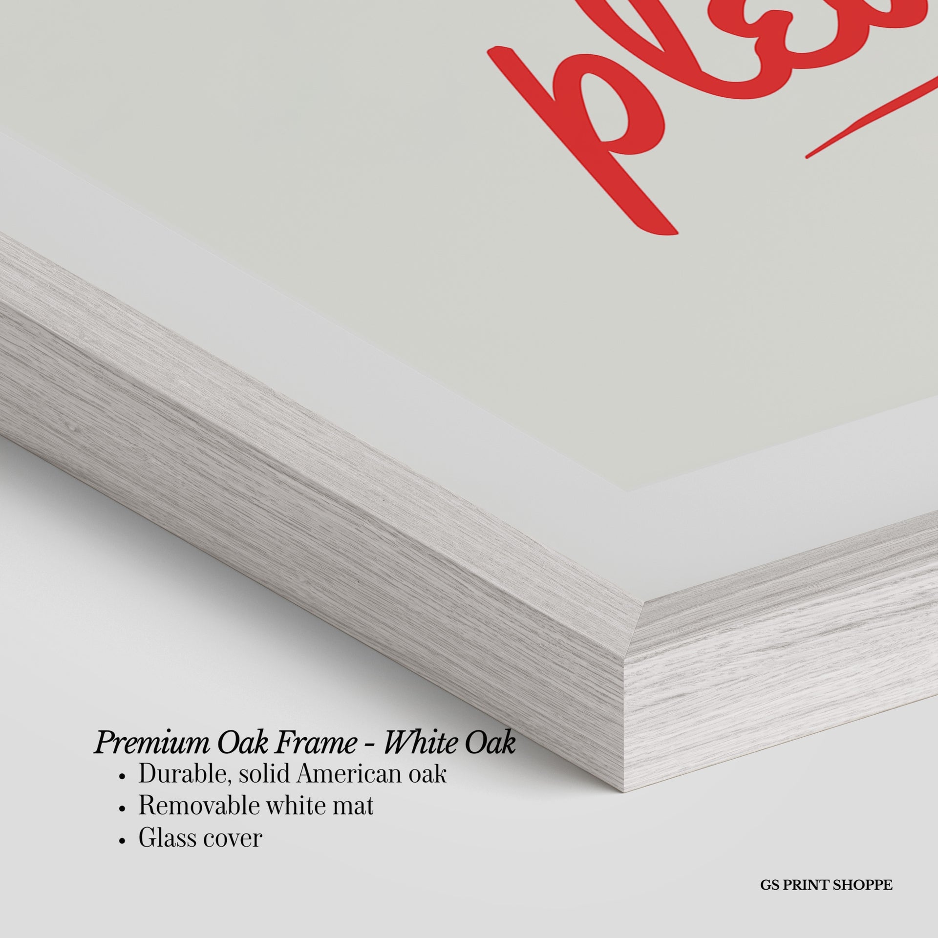 Premium Oak Frame: Our premium oak frame is crafted from solid American oak, offering a warm, natural feel with a high-end finish. We complete this elevated offering with a bright white removable mat and real glass for a versatile and polished look.