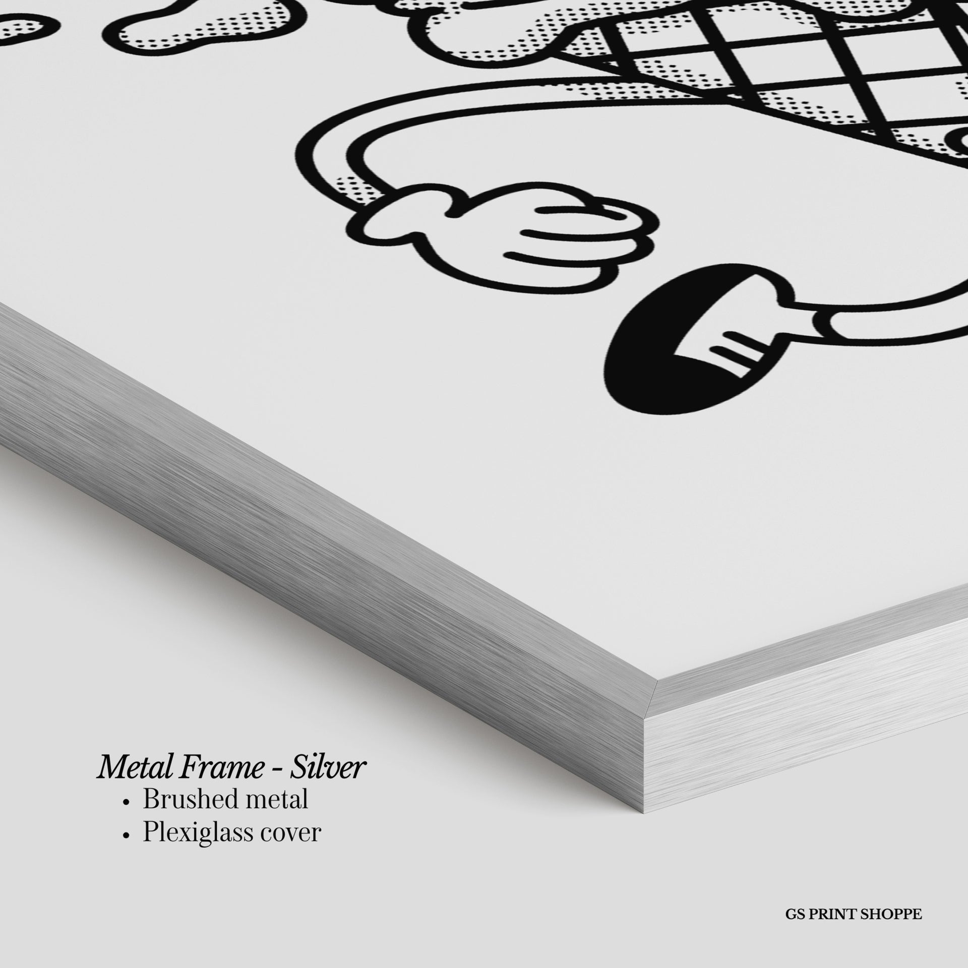 Metal Frame: Sleek and modern, our metal frame is crafted with brushed metal for a polished finish. It comes with durable plexiglass and sturdy metal hangers for horizontal or vertical display.