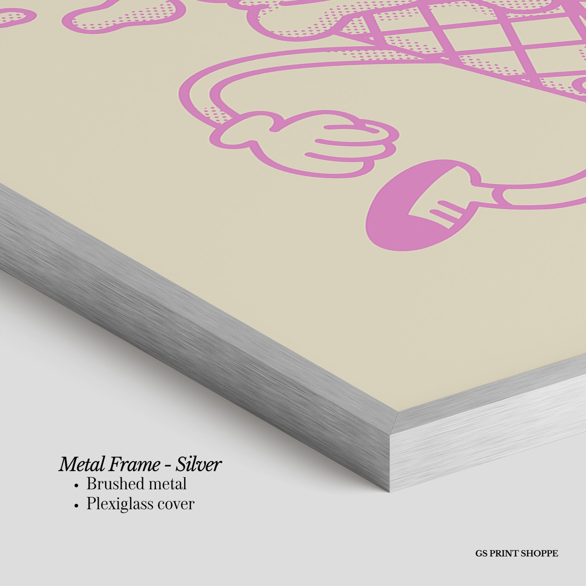 Metal Frame: Sleek and modern, our metal frame is crafted with brushed metal for a polished finish. It comes with durable plexiglass and sturdy metal hangers for horizontal or vertical display.
