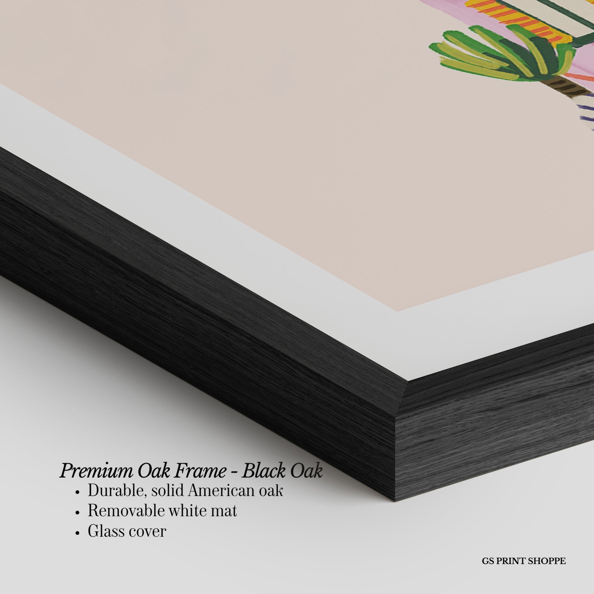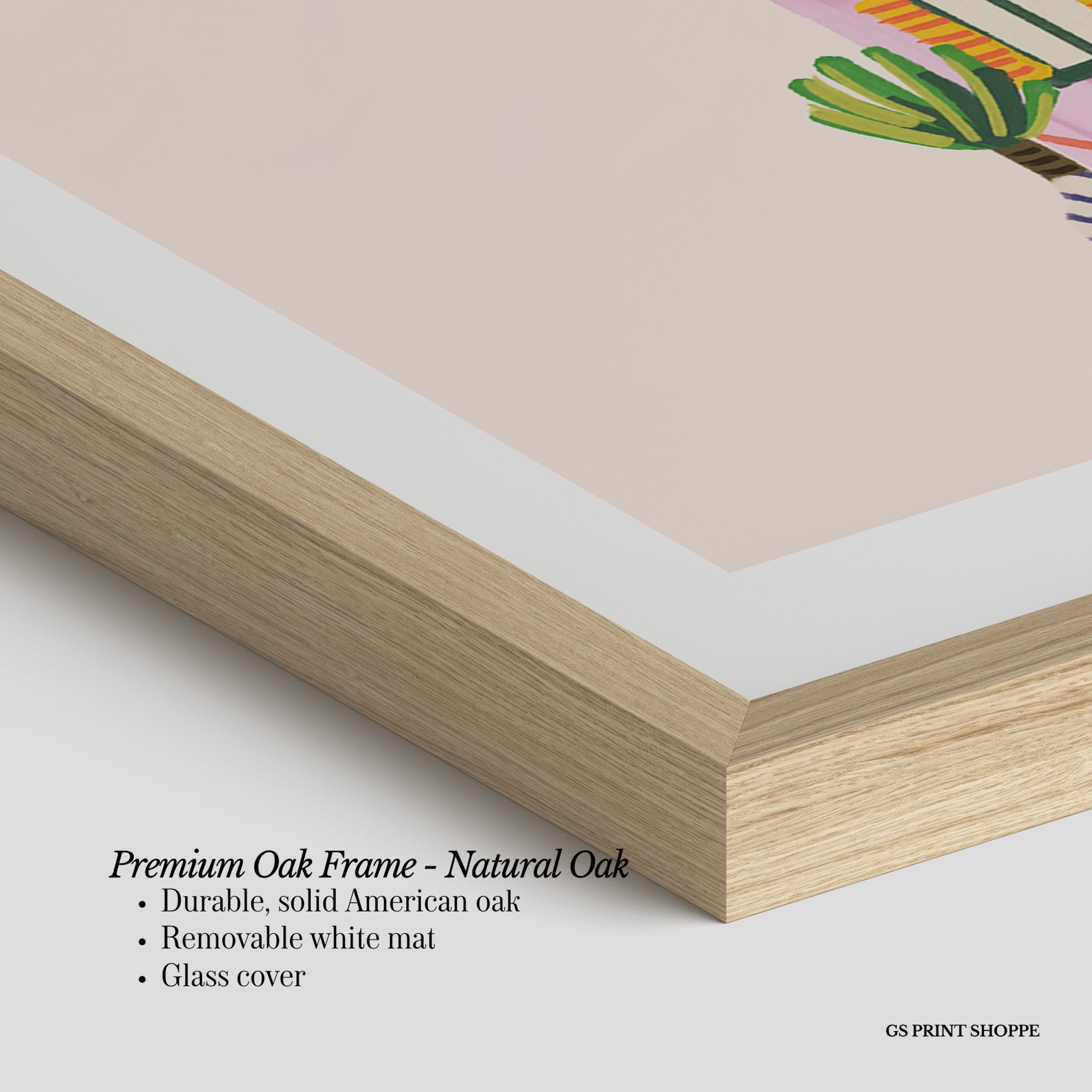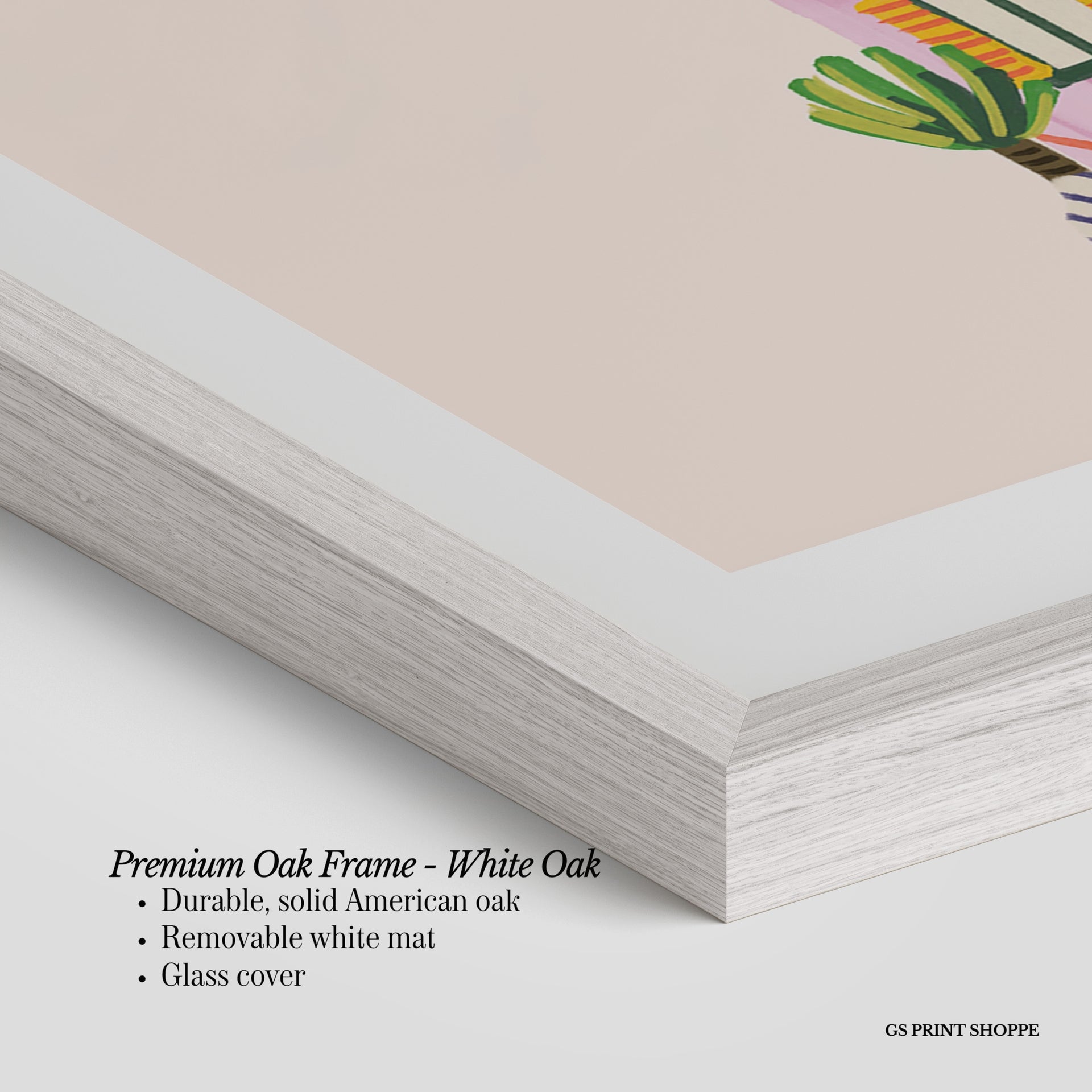 Premium Oak Frame: Our premium oak frame is crafted from solid American oak, offering a warm, natural feel with a high-end finish. We complete this elevated offering with a bright white removable mat and real glass for a versatile and polished look.