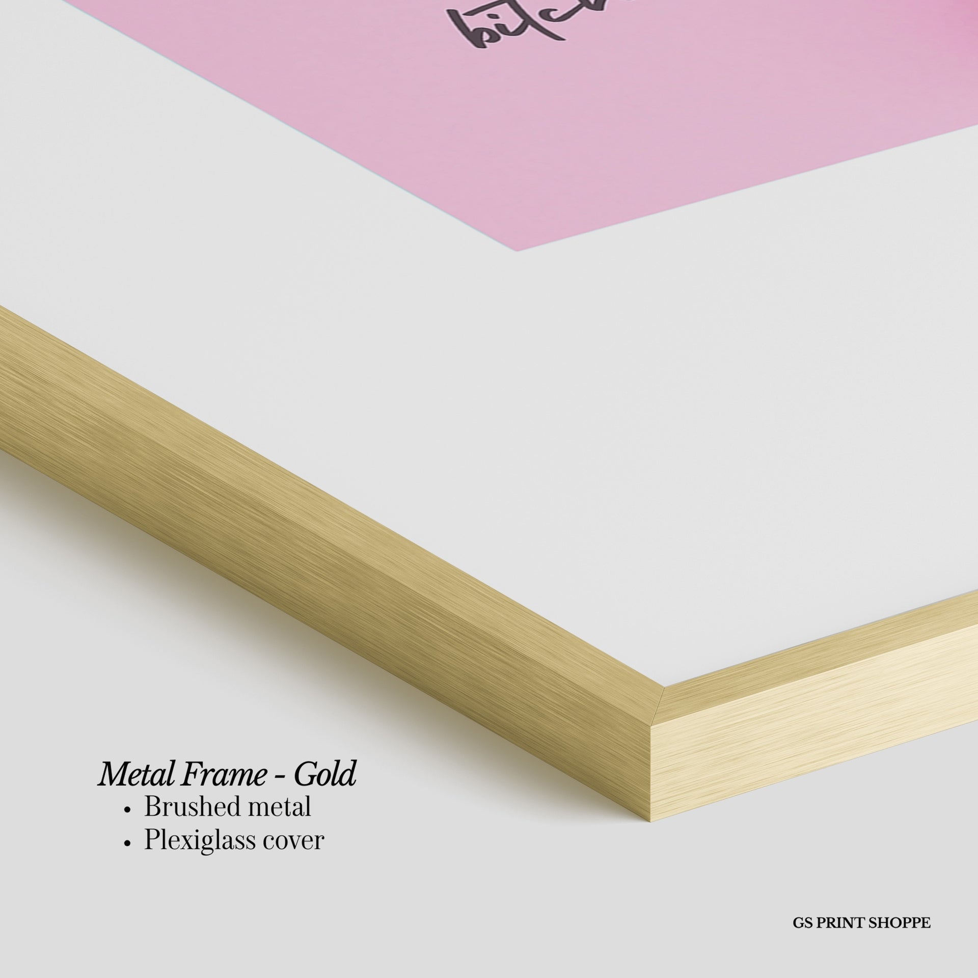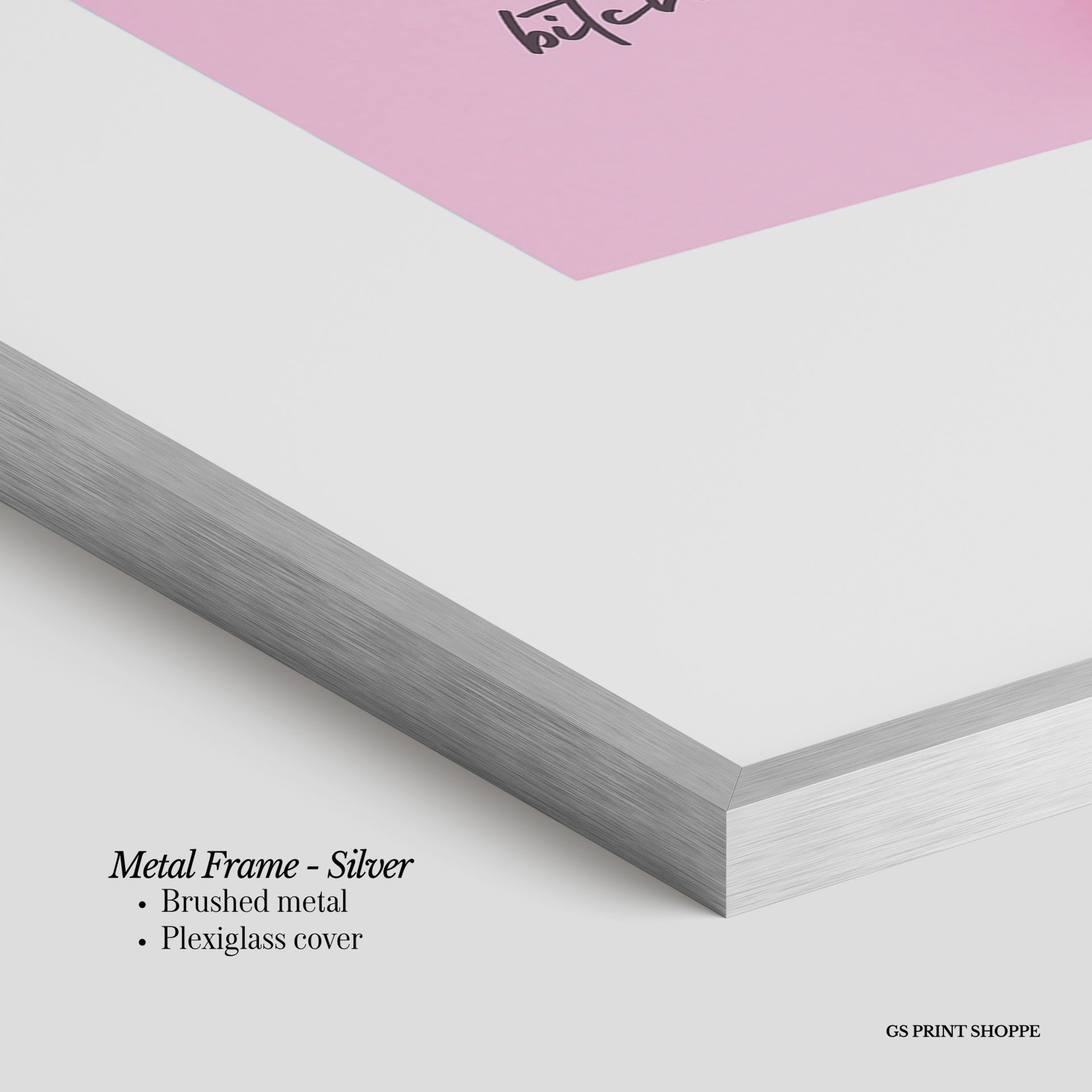 Metal Frame: Sleek and modern, our metal frame is crafted with brushed metal for a polished finish. It comes with durable plexiglass and sturdy metal hangers for horizontal or vertical display.