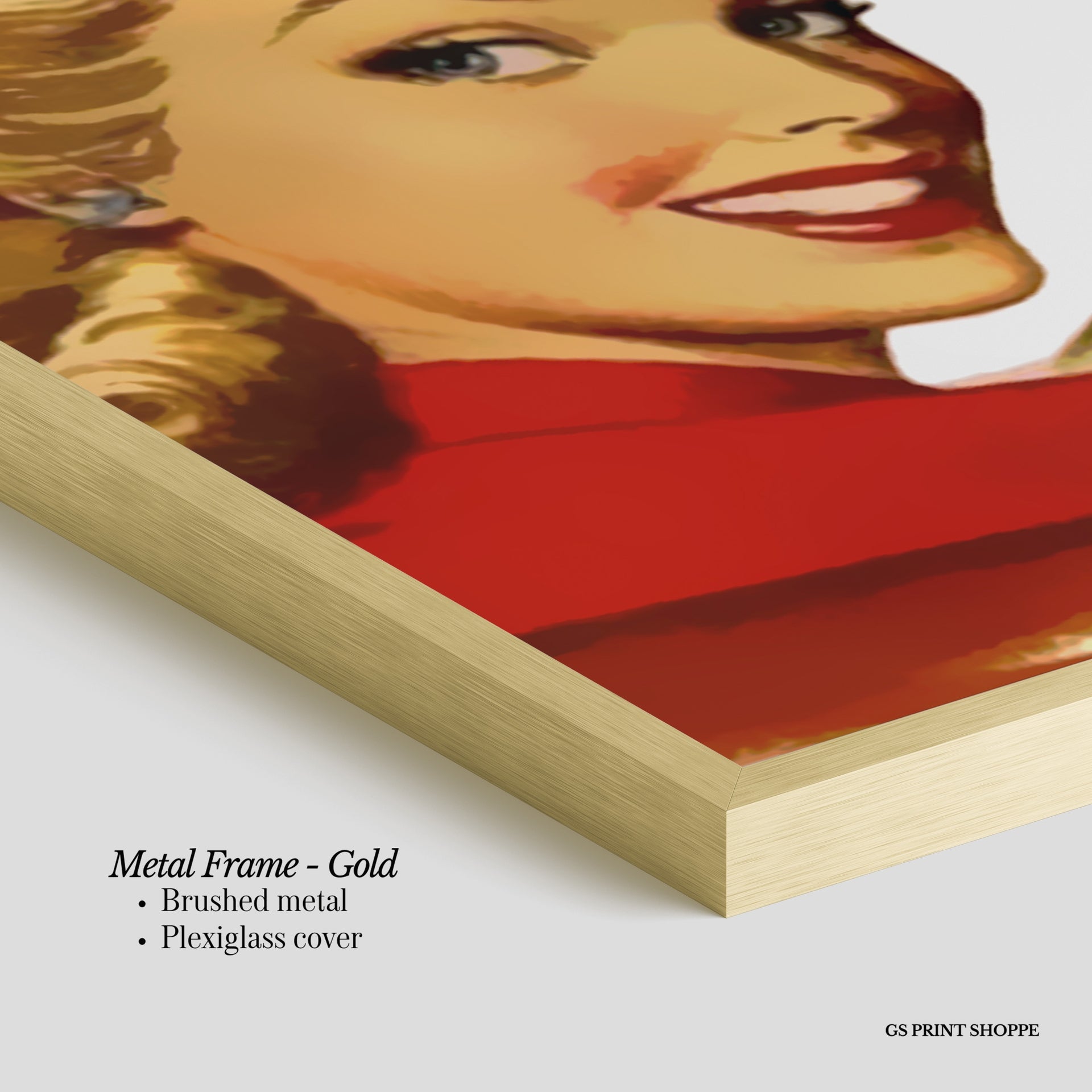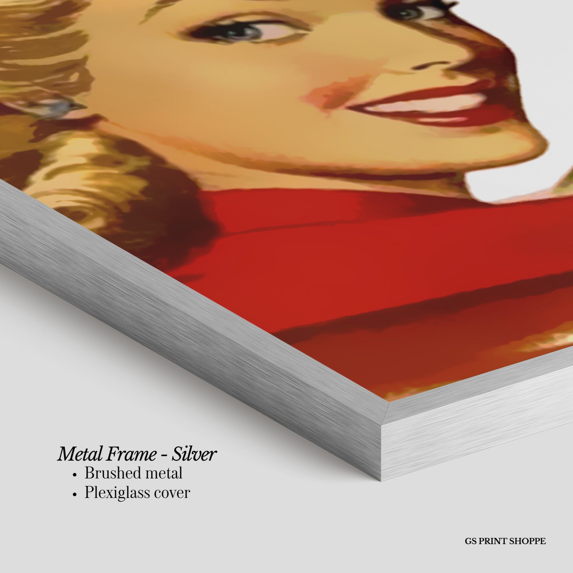 Metal Frame: Sleek and modern, our metal frame is crafted with brushed metal for a polished finish. It comes with durable plexiglass and sturdy metal hangers for horizontal or vertical display.