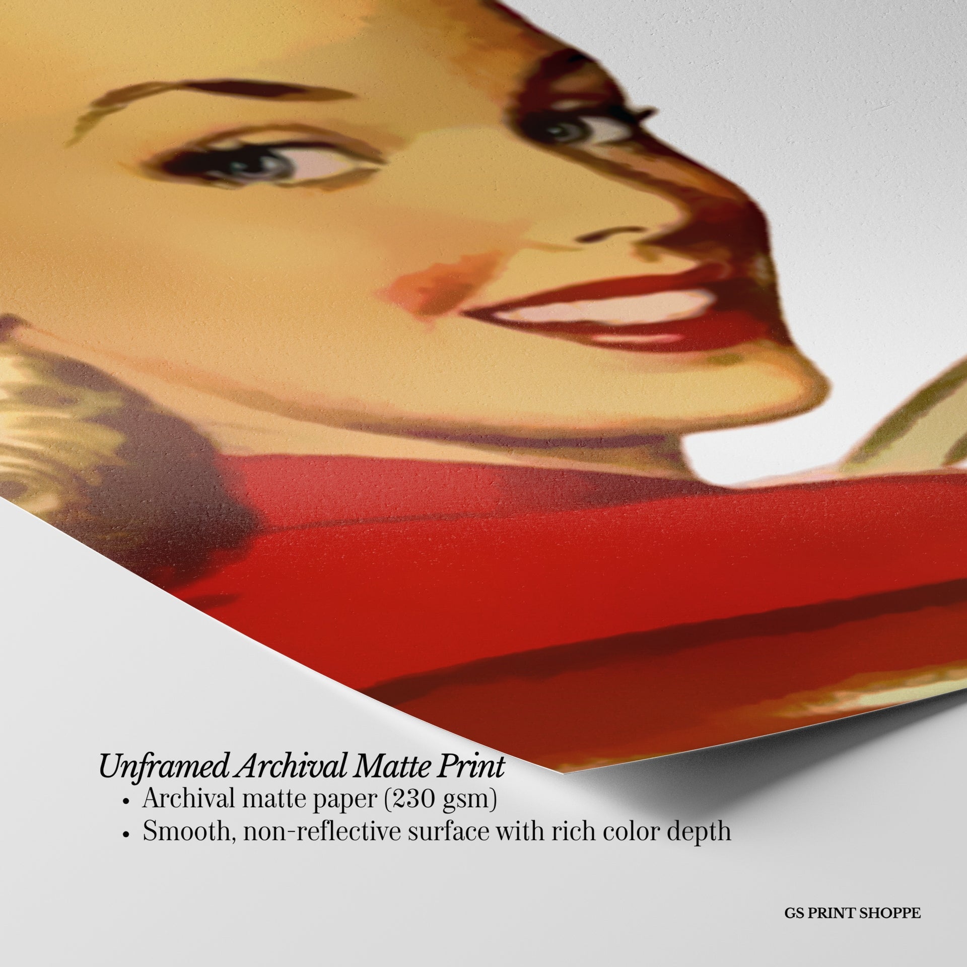 Unframed: This print is professionally printed on archival matte paper (230 gsm), a smooth, acid-free paper with a non-reflective finish. It will be carefully packaged to arrive safely at your door.