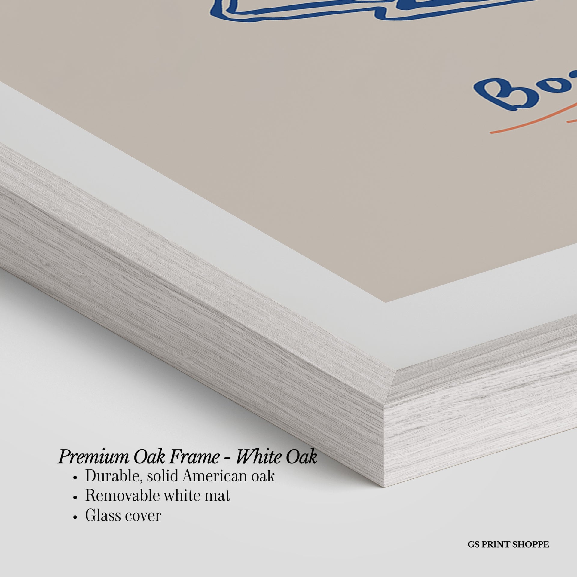 Premium Oak Frame: Our premium oak frame is crafted from solid American oak, offering a warm, natural feel with a high-end finish. We complete this elevated offering with a bright white removable mat and real glass for a versatile and polished look.
