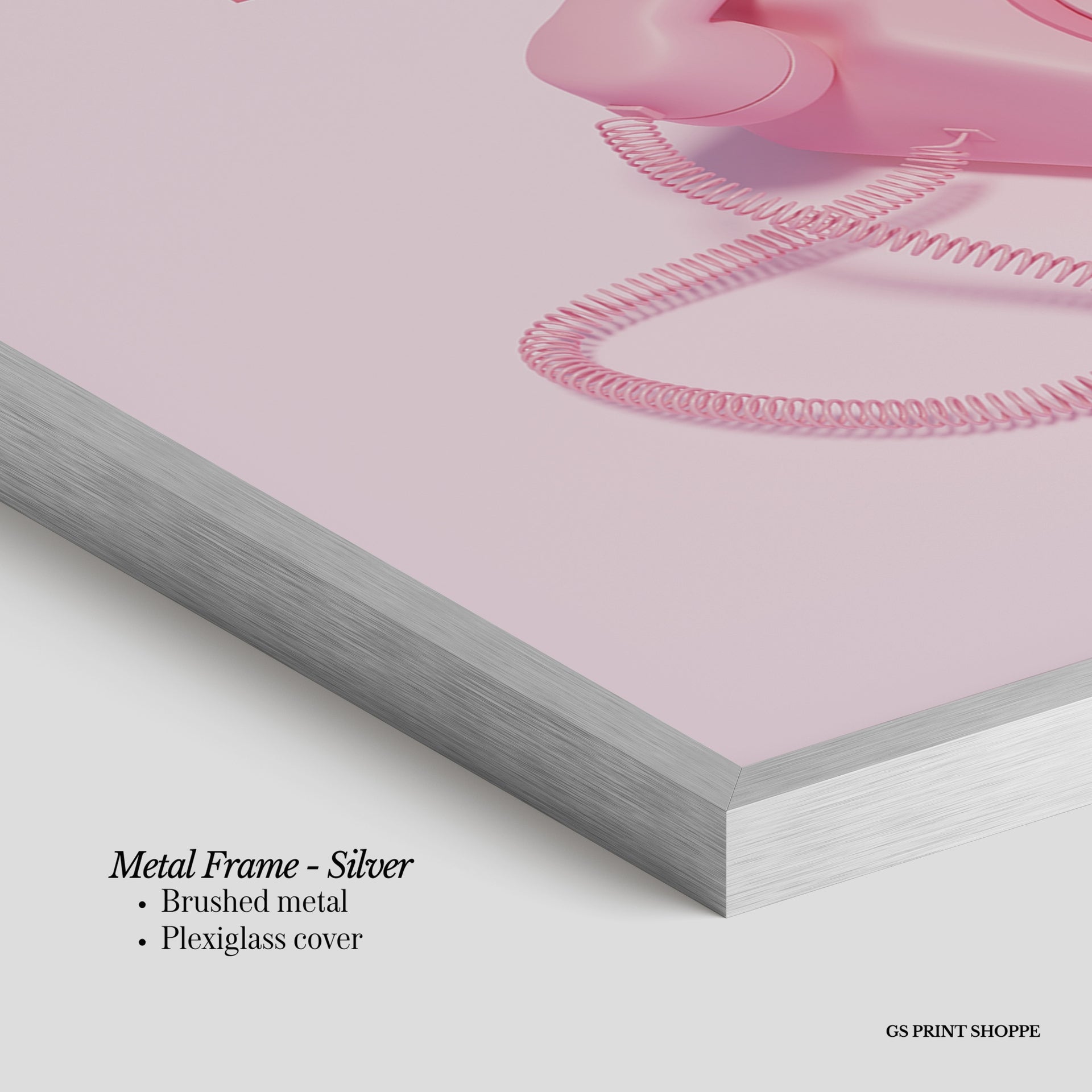 Metal Frame: Sleek and modern, our metal frame is crafted with brushed metal for a polished finish. It comes with durable plexiglass and sturdy metal hangers for horizontal or vertical display.