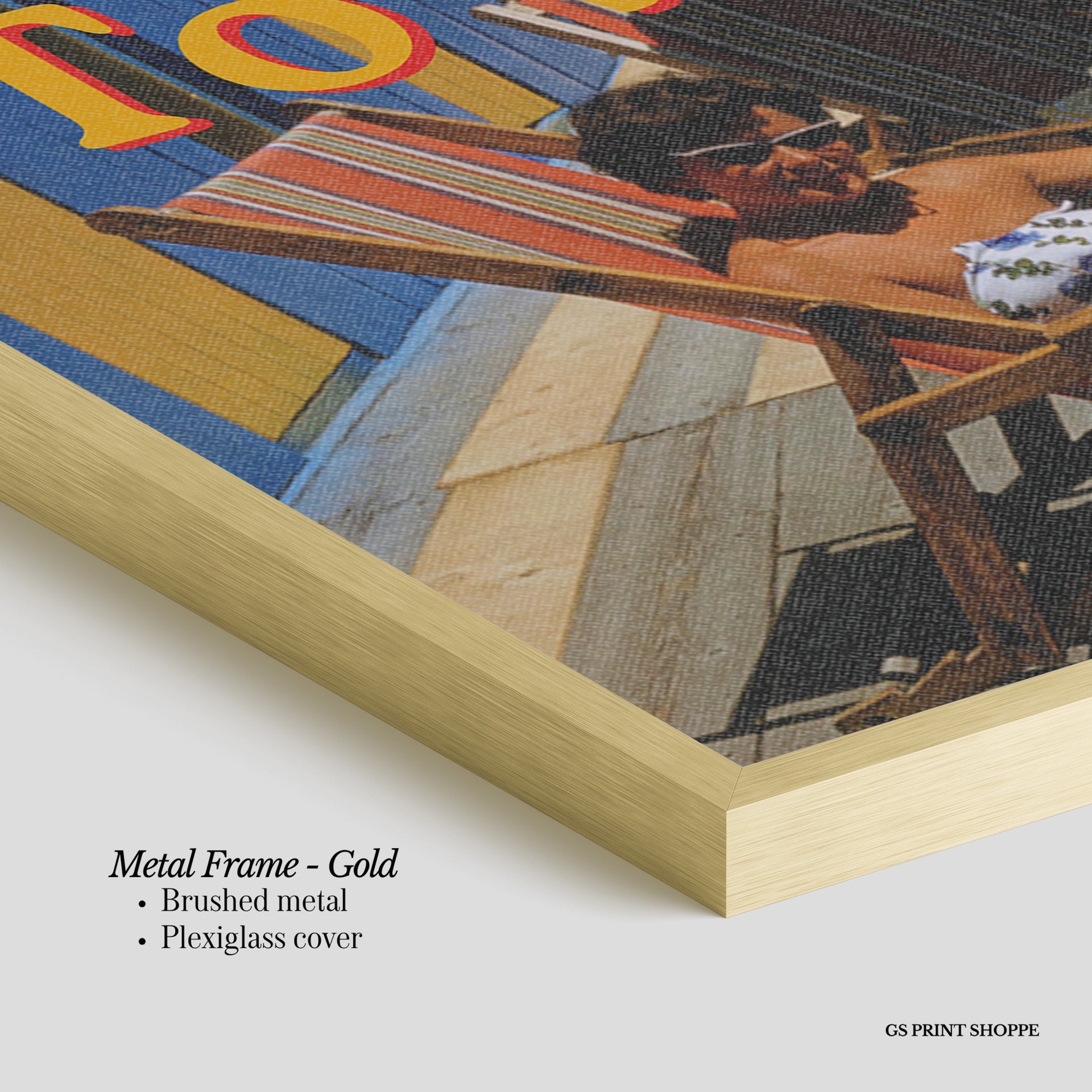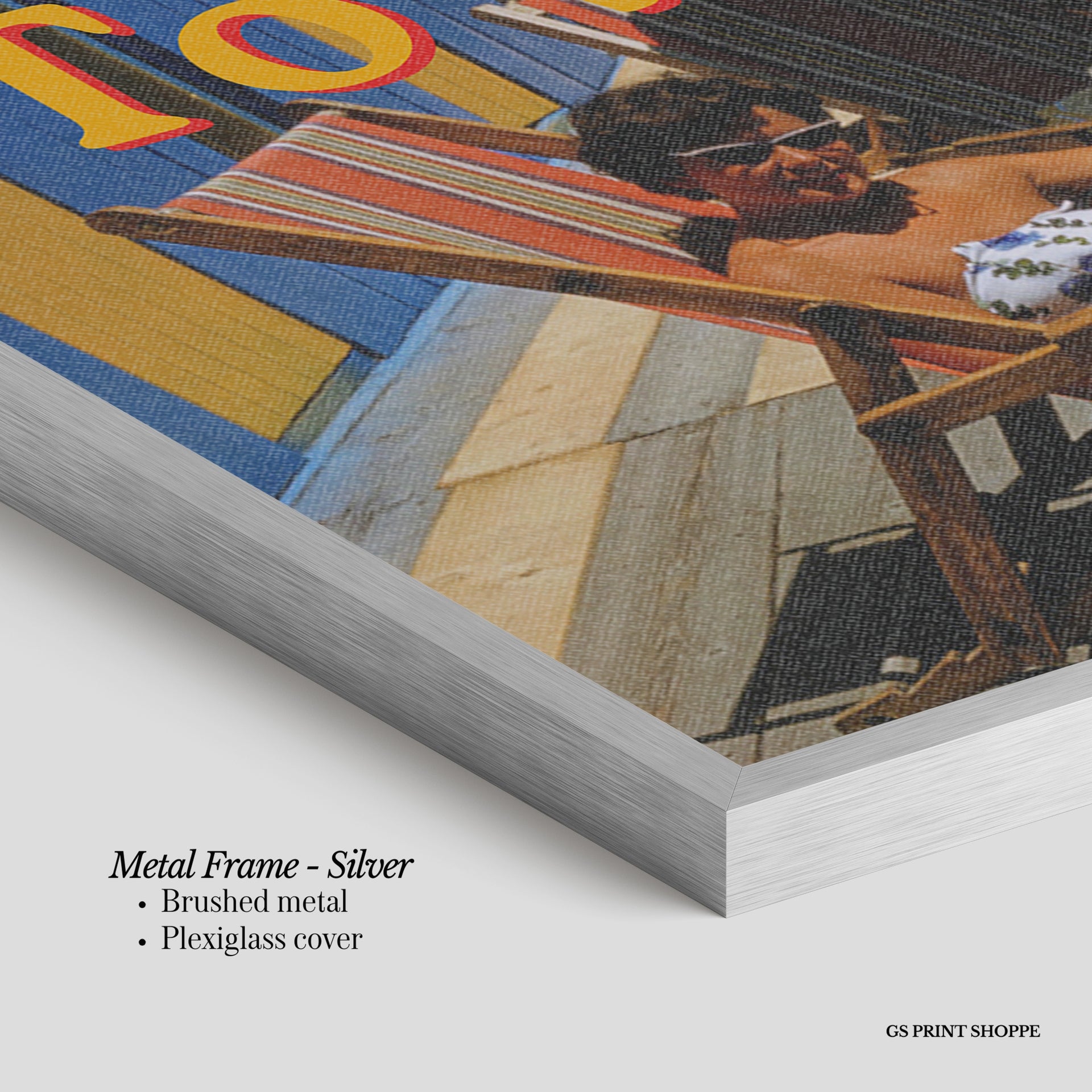 Metal Frame: Sleek and modern, our metal frame is crafted with brushed metal for a polished finish. It comes with durable plexiglass and sturdy metal hangers for horizontal or vertical display.