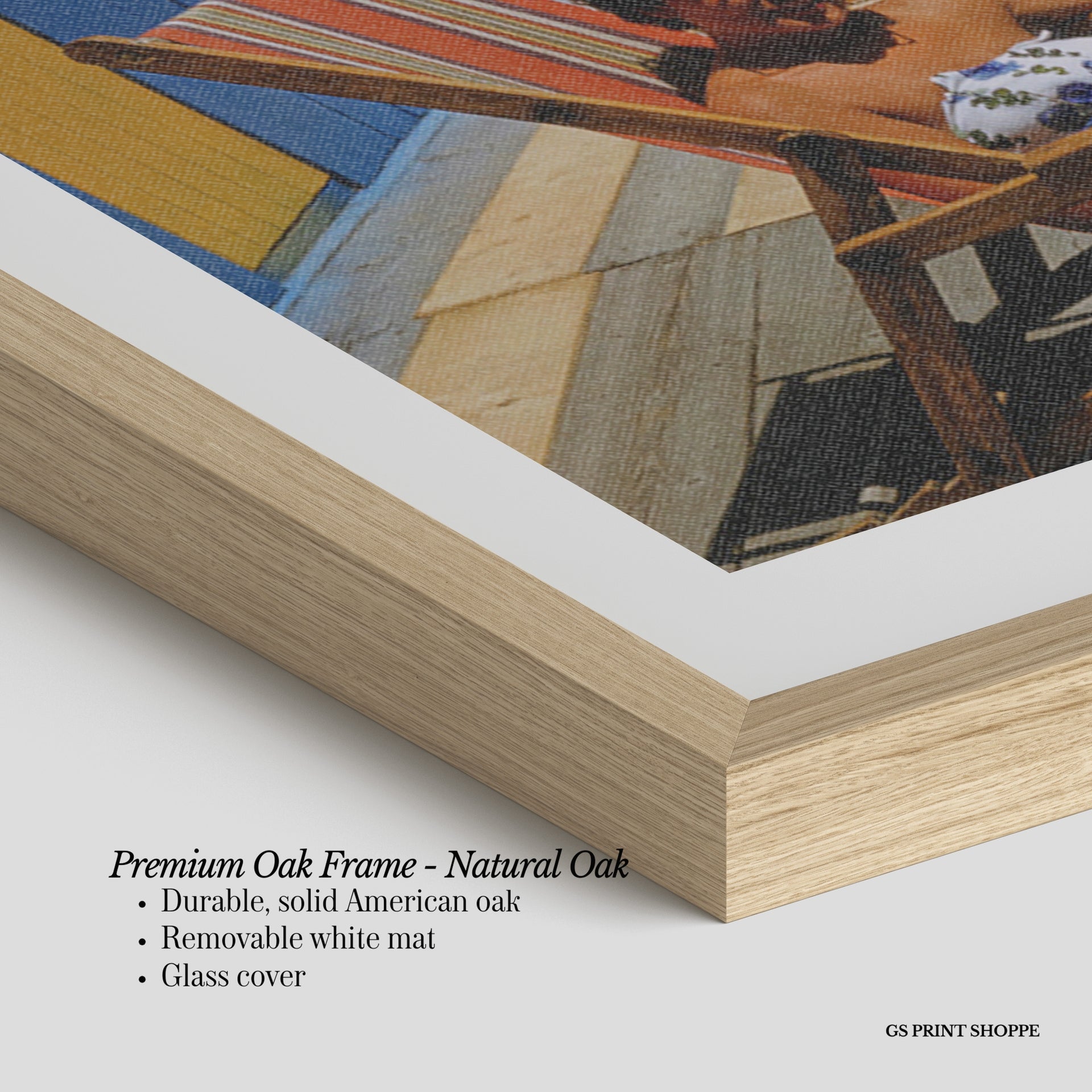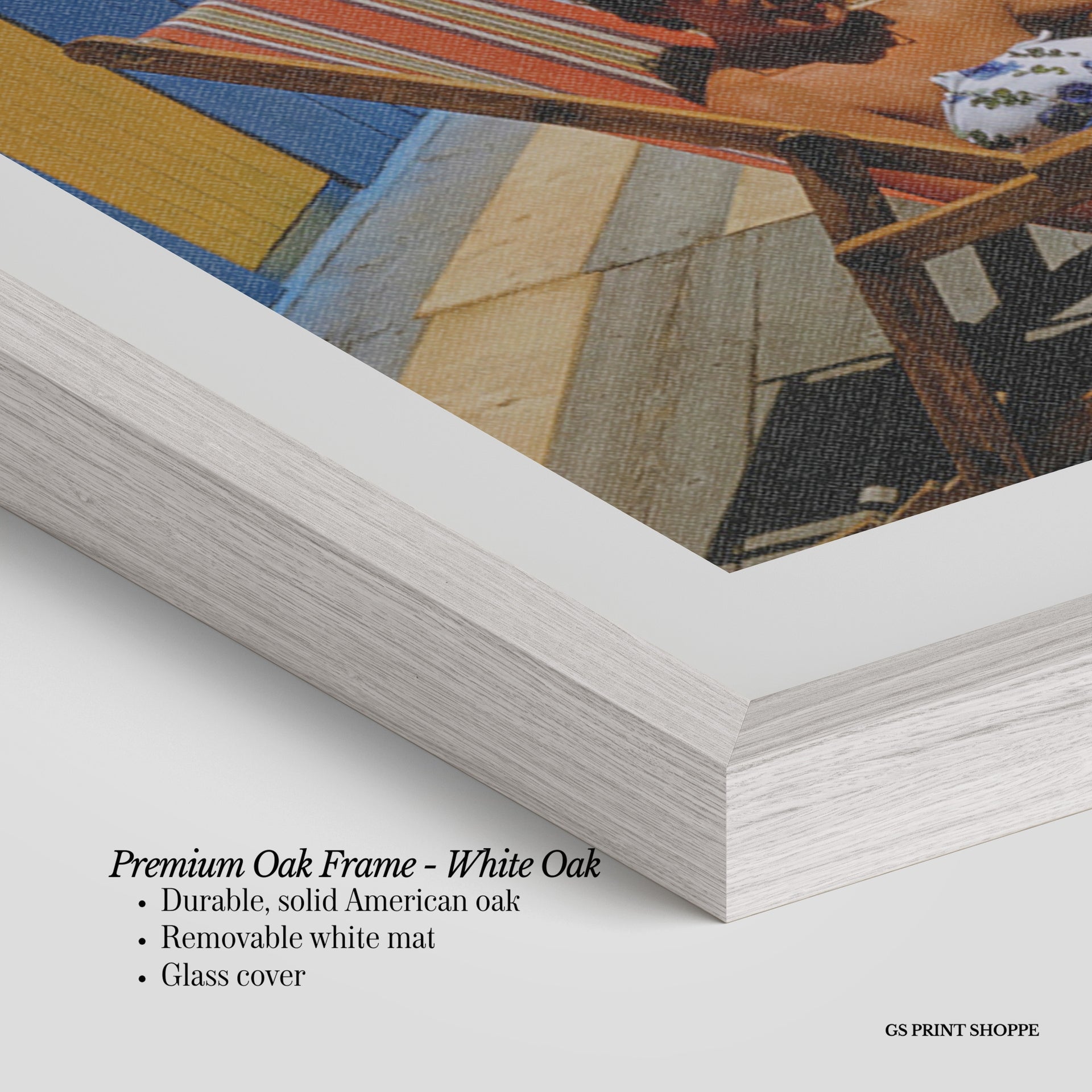Premium Oak Frame: Our premium oak frame is crafted from solid American oak, offering a warm, natural feel with a high-end finish. We complete this elevated offering with a bright white removable mat and real glass for a versatile and polished look.