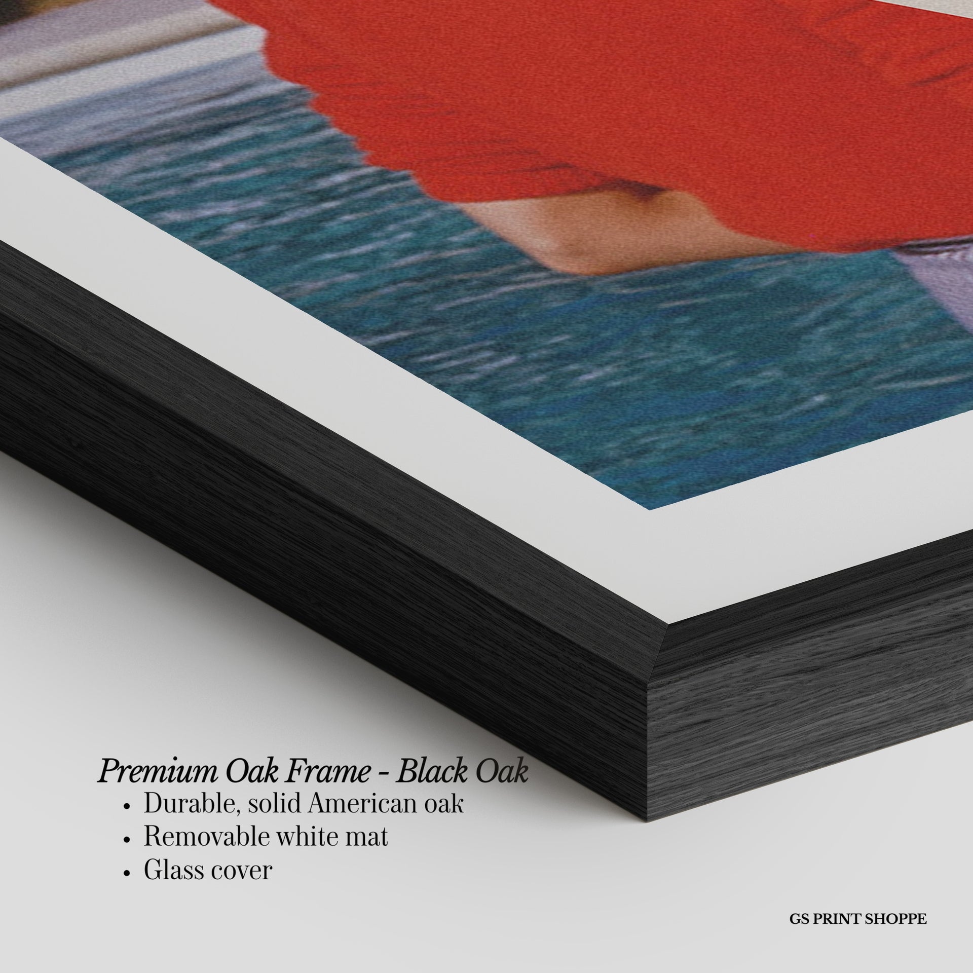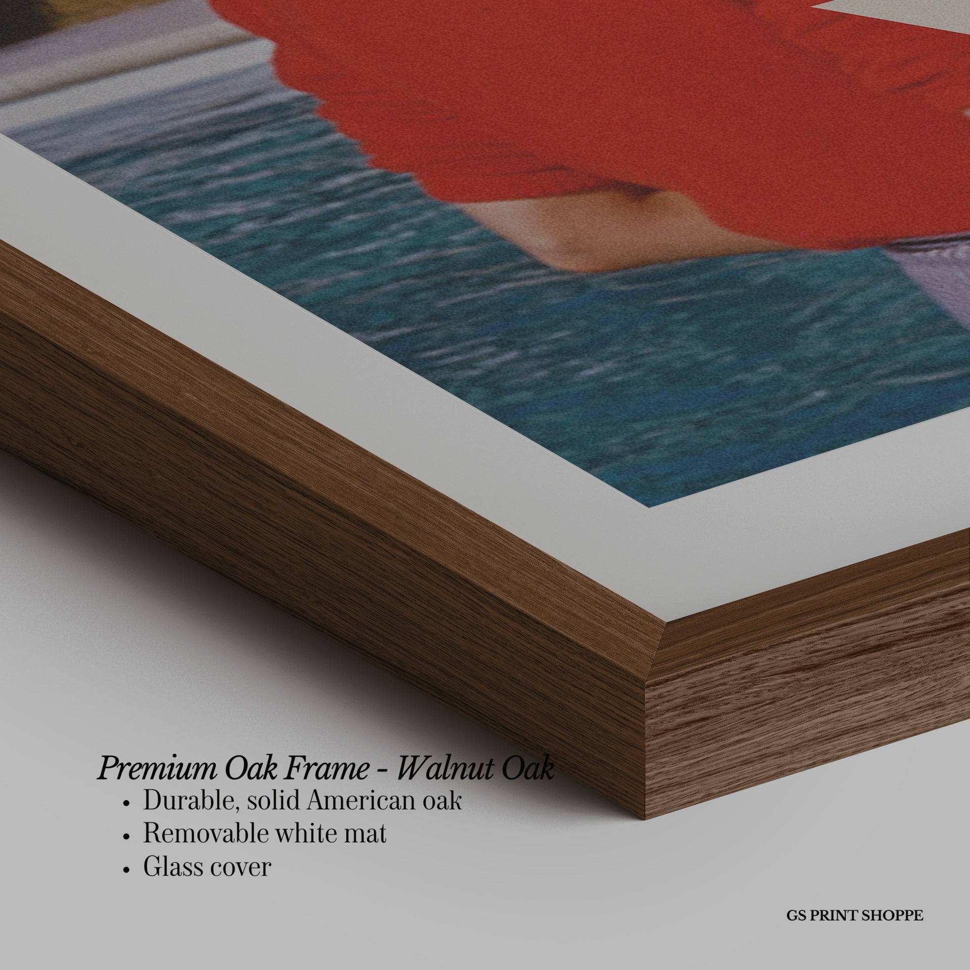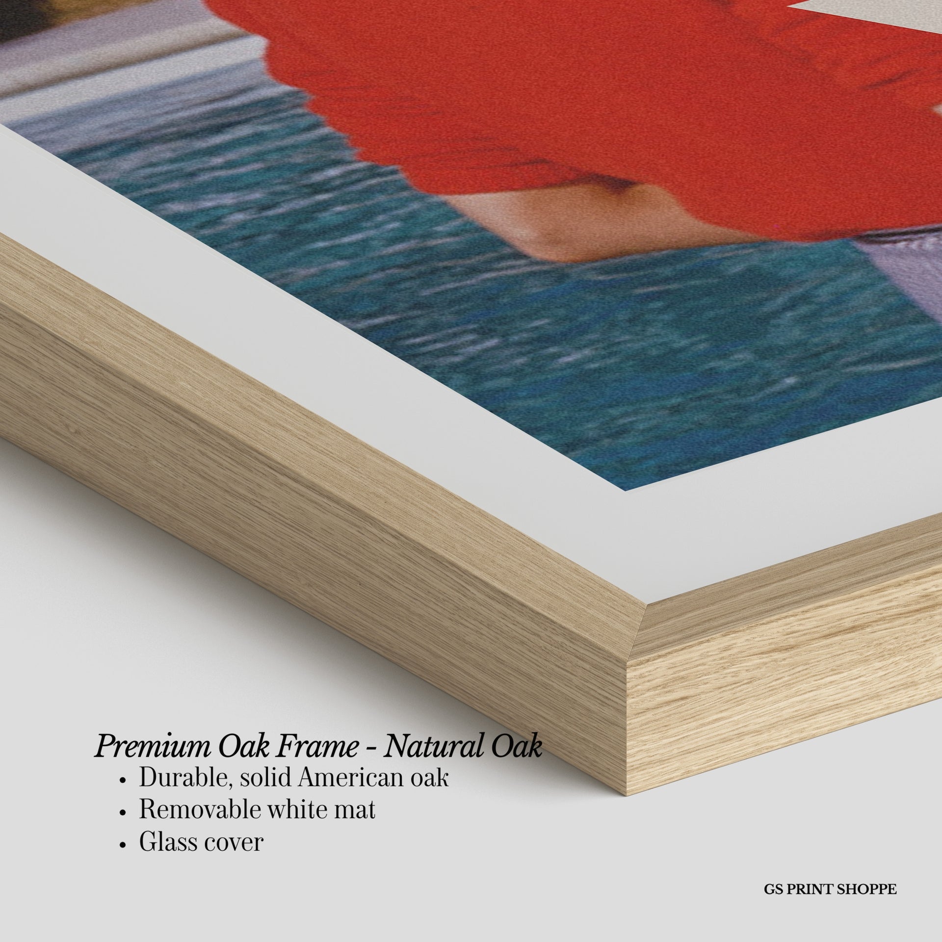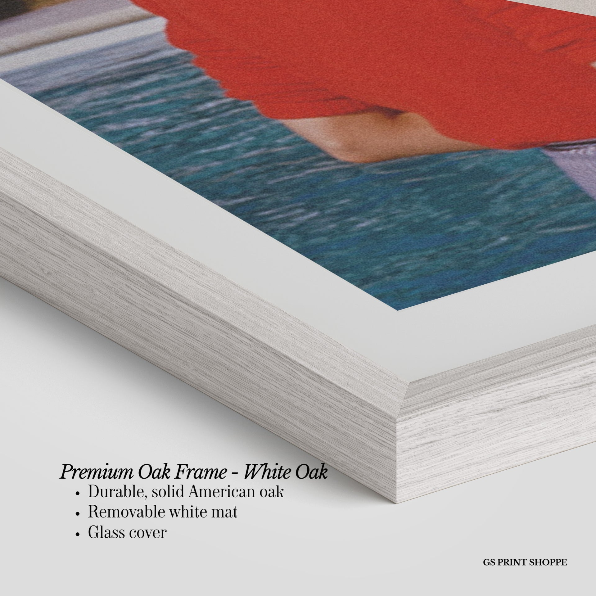 Premium Oak Frame: Our premium oak frame is crafted from solid American oak, offering a warm, natural feel with a high-end finish. We complete this elevated offering with a bright white removable mat and real glass for a versatile and polished look.
