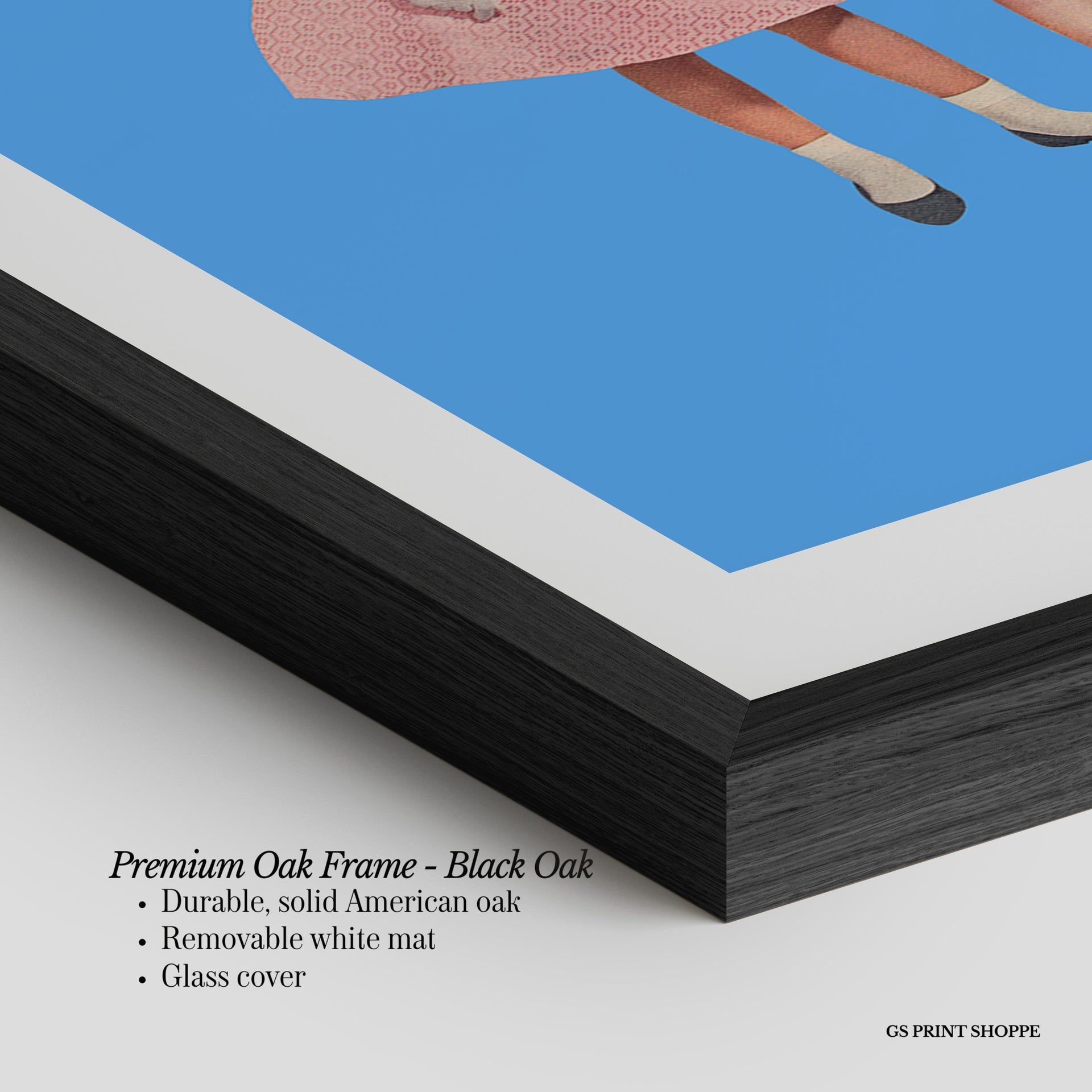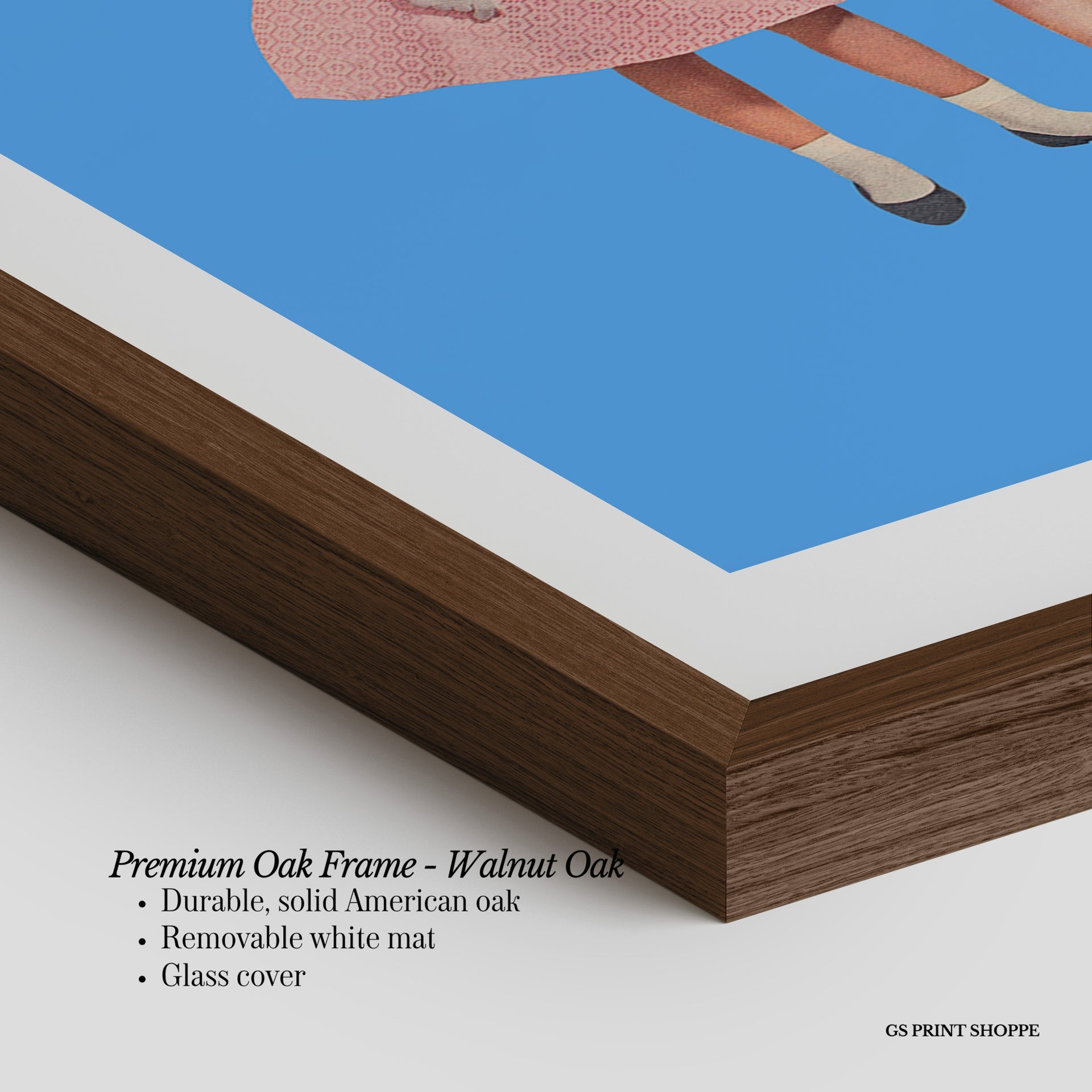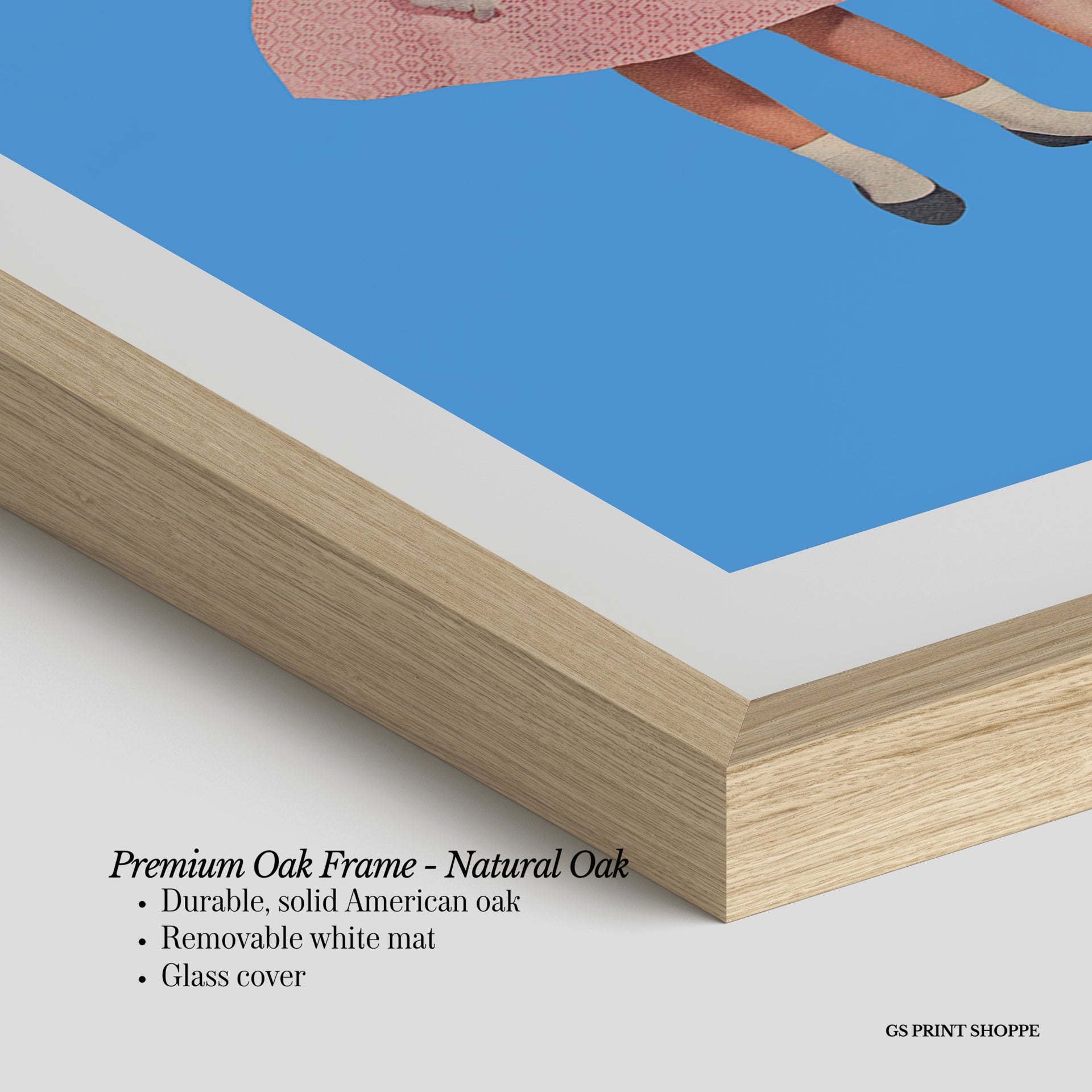 Premium Oak Frame: Our premium oak frame is crafted from solid American oak, offering a warm, natural feel with a high-end finish. We complete this elevated offering with a bright white removable mat and real glass for a versatile and polished look.