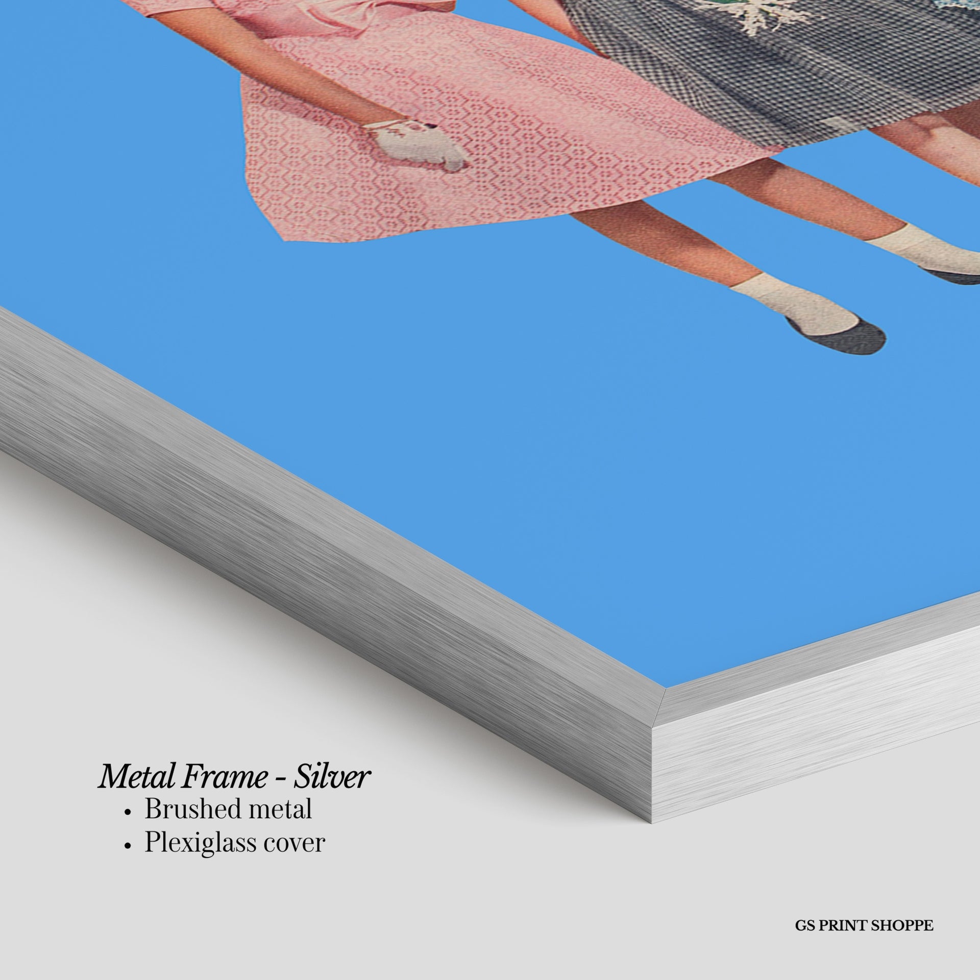 Metal Frame: Sleek and modern, our metal frame is crafted with brushed metal for a polished finish. It comes with durable plexiglass and sturdy metal hangers for horizontal or vertical display.