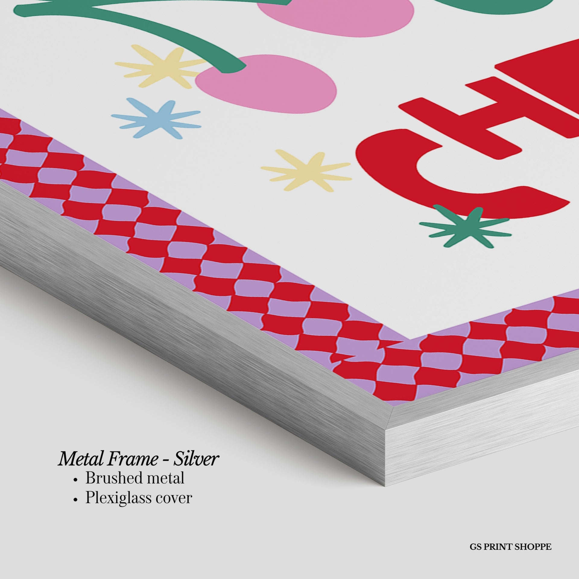 Metal Frame: Sleek and modern, our metal frame is crafted with brushed metal for a polished finish. It comes with durable plexiglass and sturdy metal hangers for horizontal or vertical display.