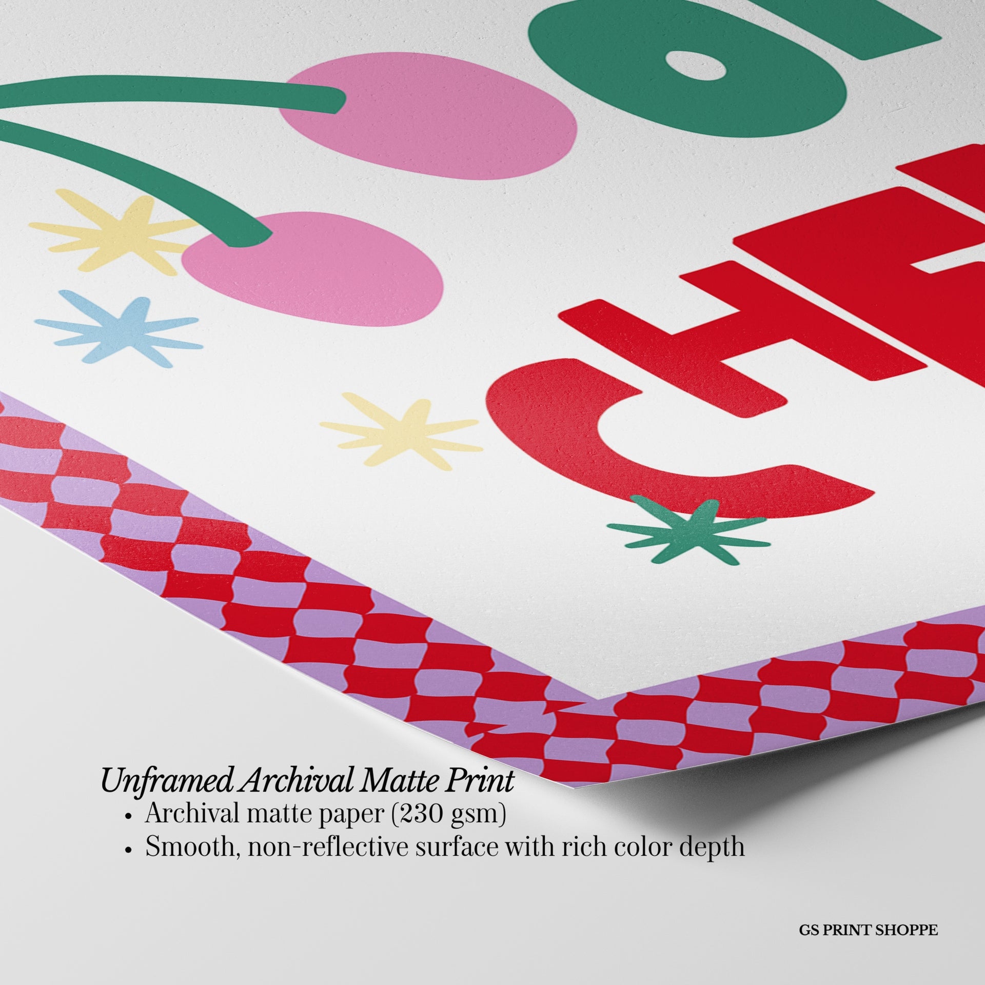 Unframed: This print is professionally printed on archival matte paper (230 gsm), a smooth, acid-free paper with a non-reflective finish. It will be carefully packaged to arrive safely at your door.