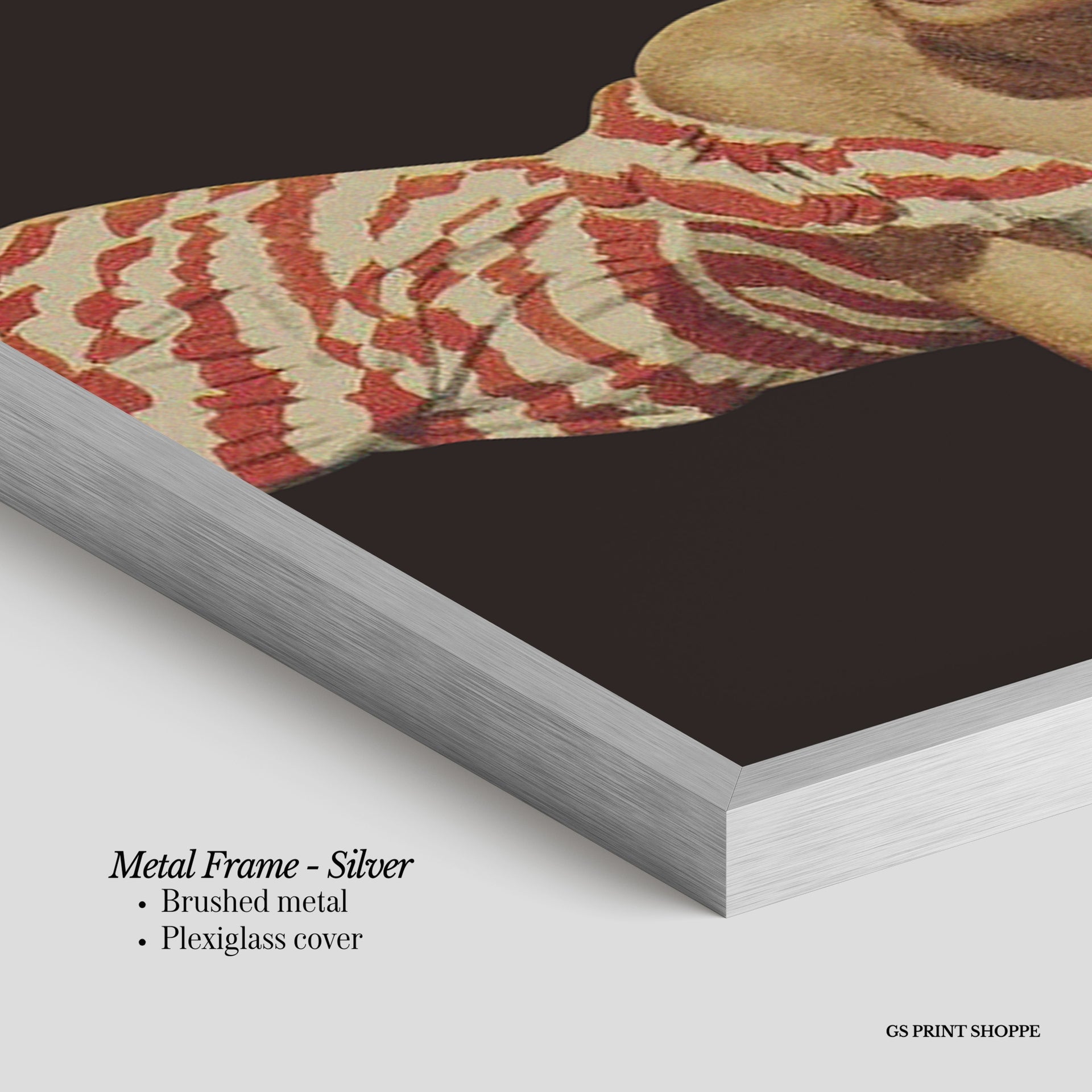 Metal Frame: Sleek and modern, our metal frame is crafted with brushed metal for a polished finish. It comes with durable plexiglass and sturdy metal hangers for horizontal or vertical display.