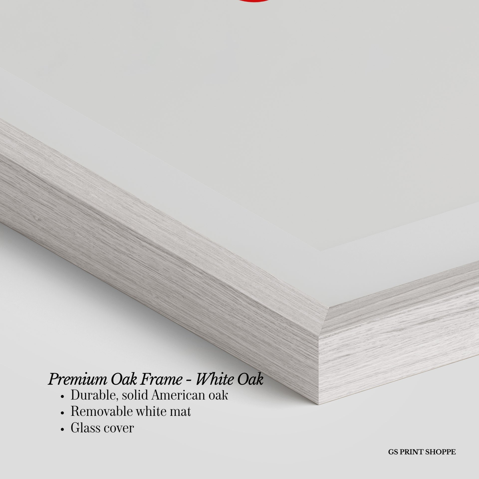 Premium Oak Frame: Our premium oak frame is crafted from solid American oak, offering a warm, natural feel with a high-end finish. We complete this elevated offering with a bright white removable mat and real glass for a versatile and polished look.