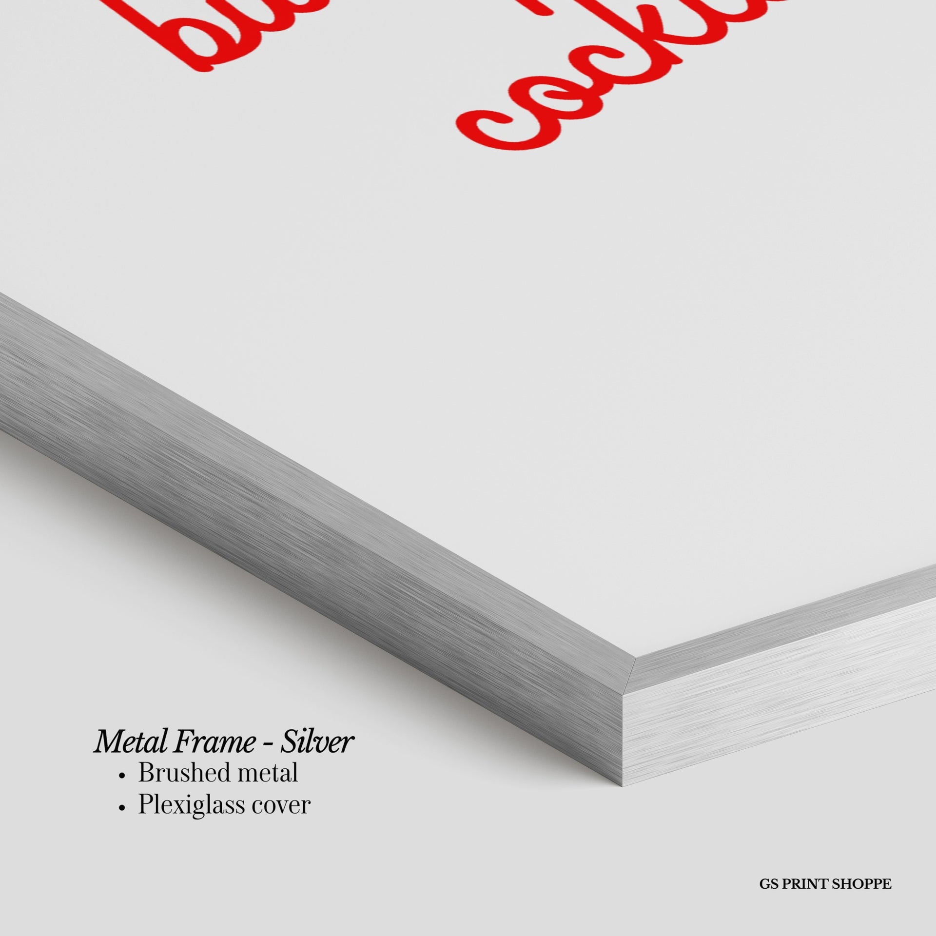 Metal Frame: Sleek and modern, our metal frame is crafted with brushed metal for a polished finish. It comes with durable plexiglass and sturdy metal hangers for horizontal or vertical display.