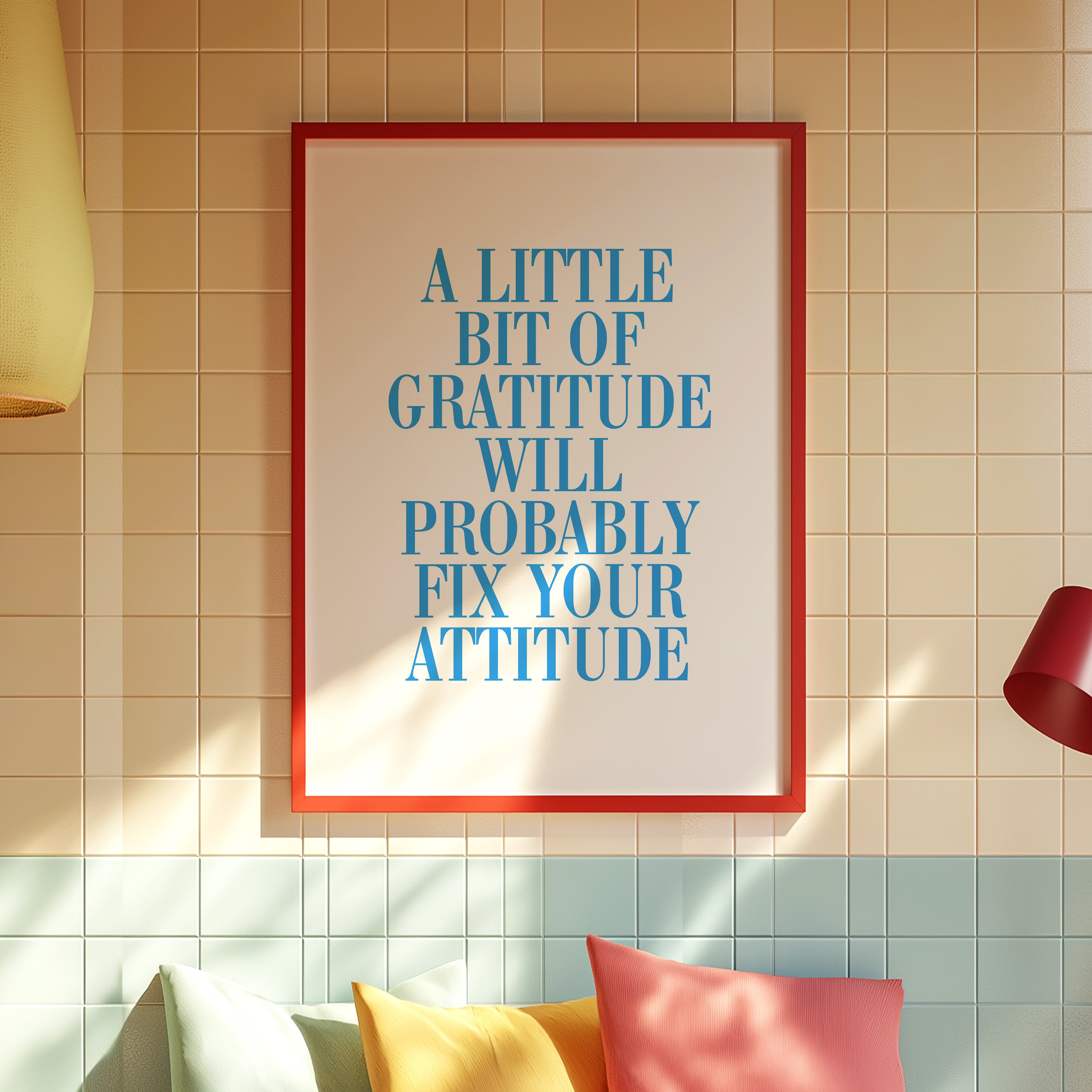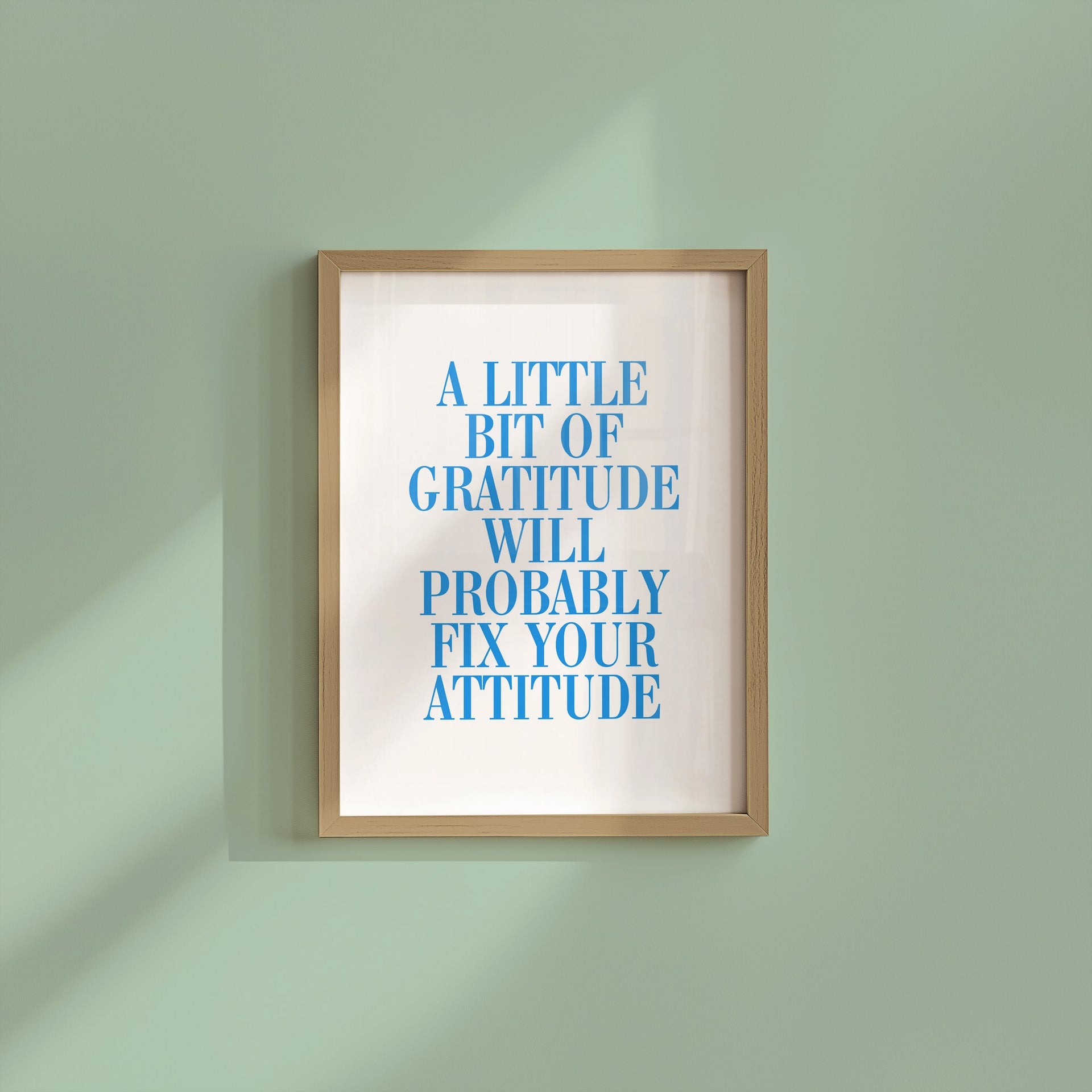 A Little Bit of Gratitude Vertical Art Print - White and Blue