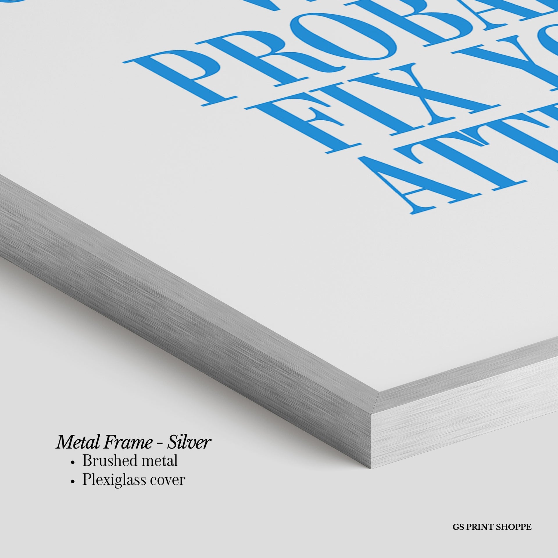 Metal Frame: Sleek and modern, our metal frame is crafted with brushed metal for a polished finish. It comes with durable plexiglass and sturdy metal hangers for horizontal or vertical display.