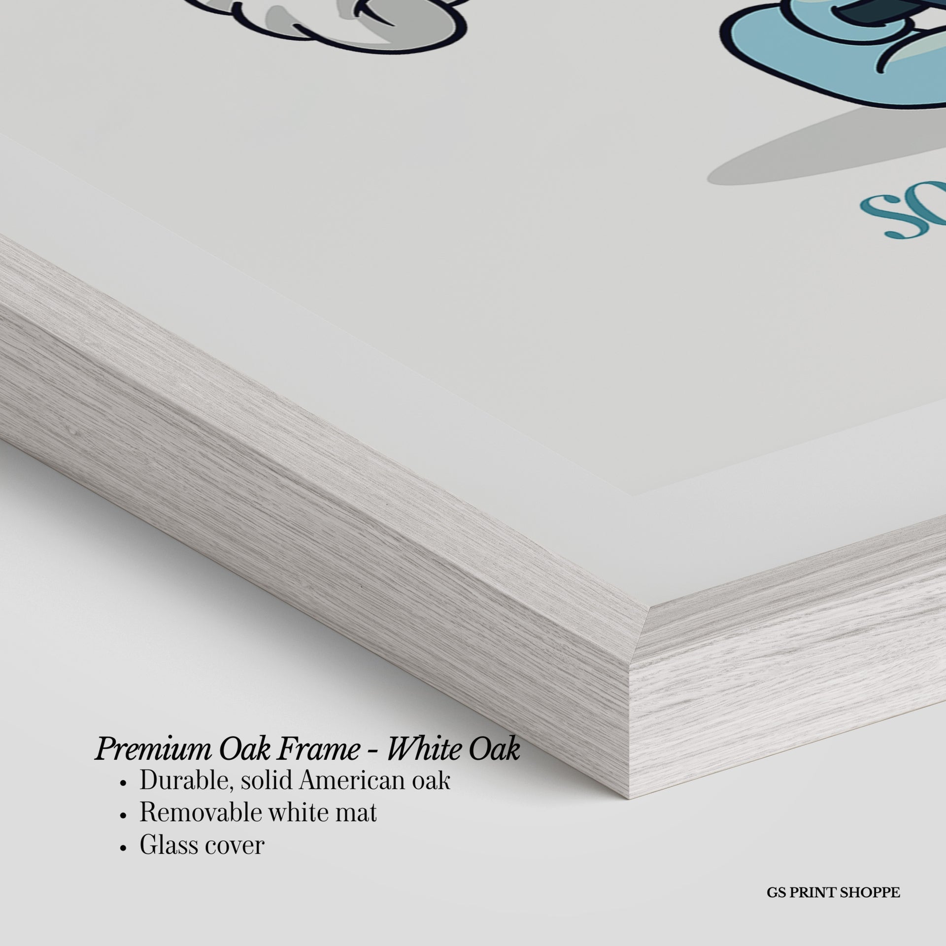 Premium Oak Frame: Our premium oak frame is crafted from solid American oak, offering a warm, natural feel with a high-end finish. We complete this elevated offering with a bright white removable mat and real glass for a versatile and polished look.