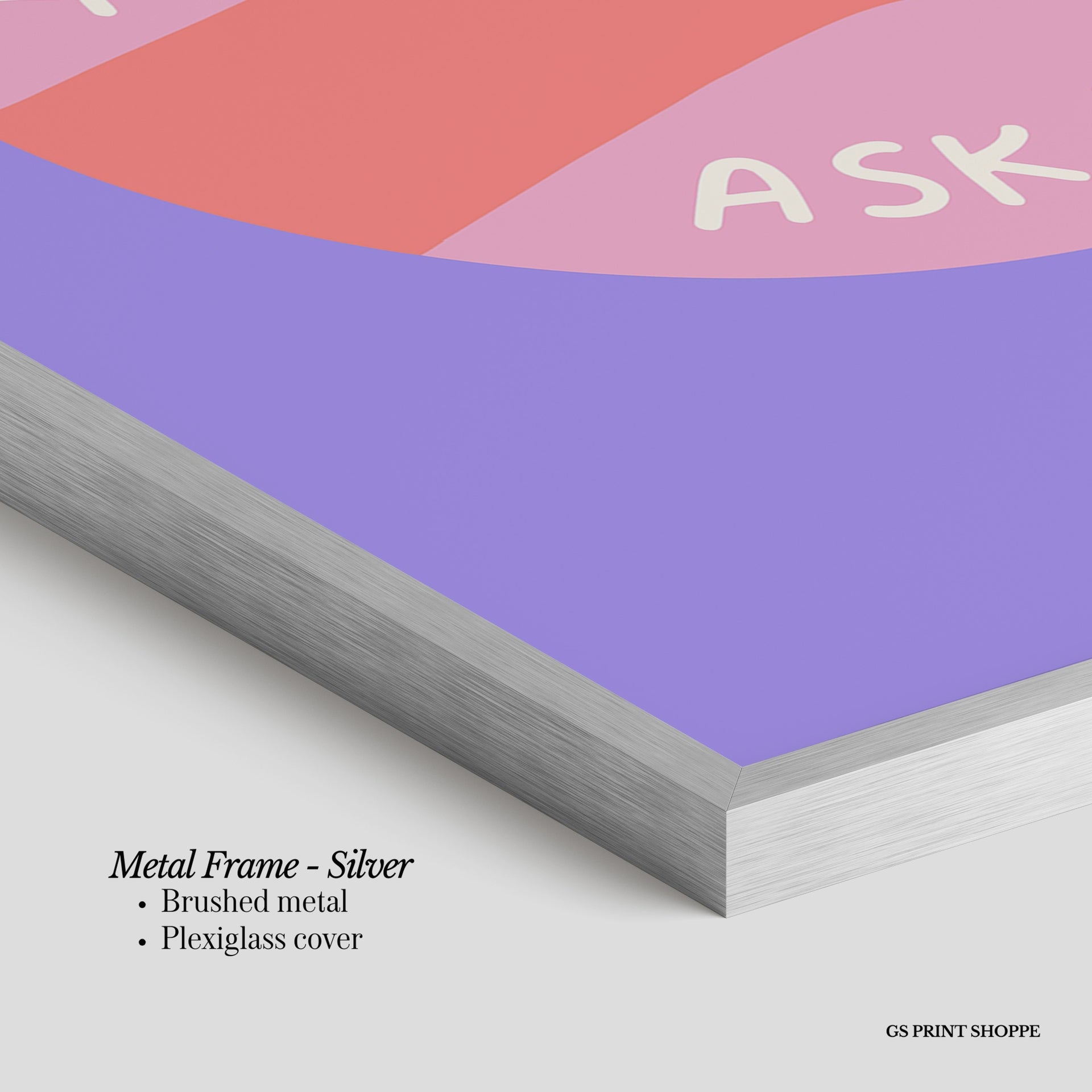 Metal Frame: Sleek and modern, our metal frame is crafted with brushed metal for a polished finish. It comes with durable plexiglass and sturdy metal hangers for horizontal or vertical display.