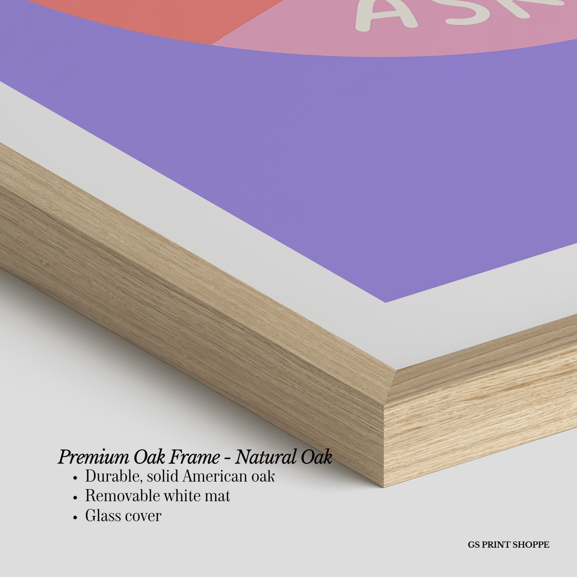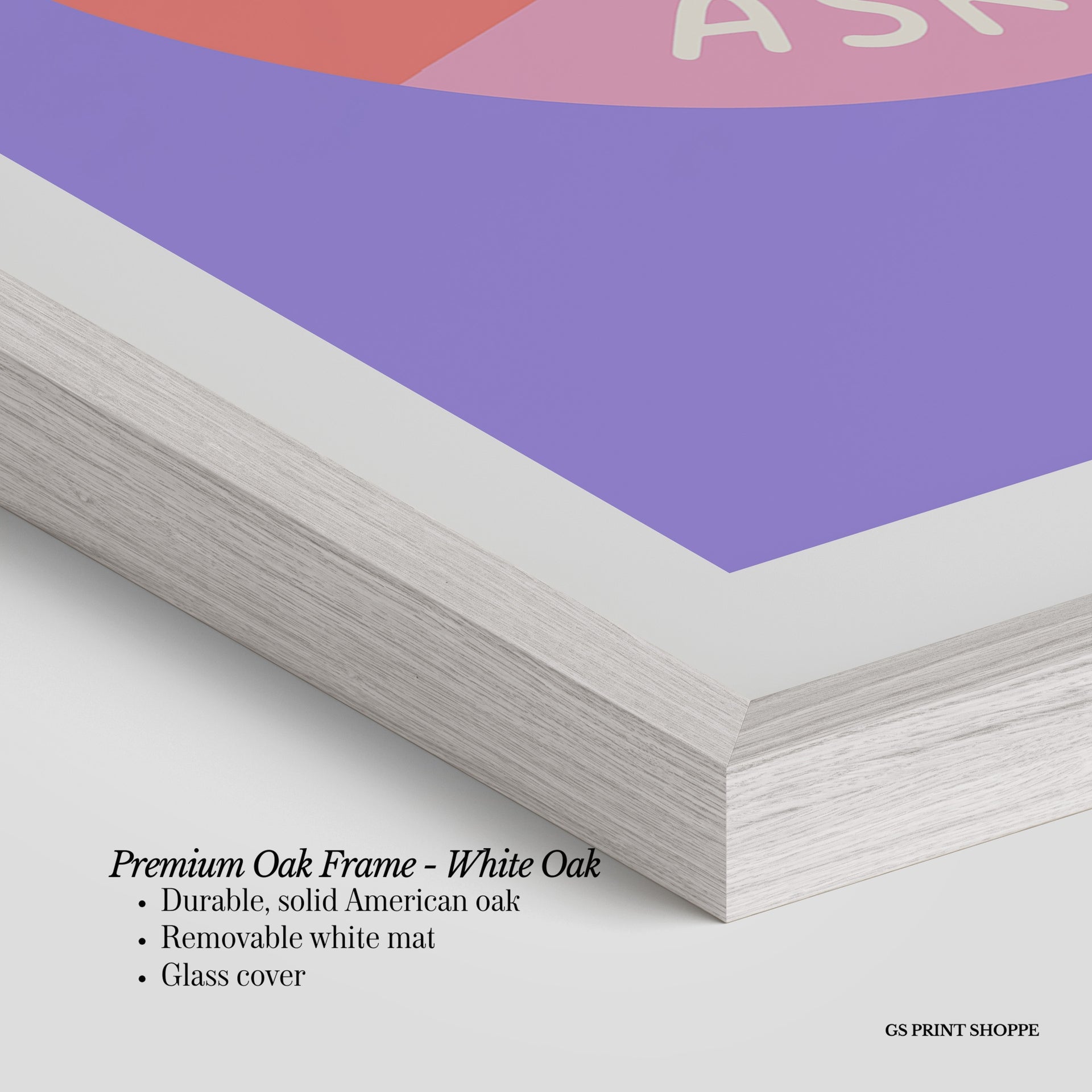 Premium Oak Frame: Our premium oak frame is crafted from solid American oak, offering a warm, natural feel with a high-end finish. We complete this elevated offering with a bright white removable mat and real glass for a versatile and polished look.