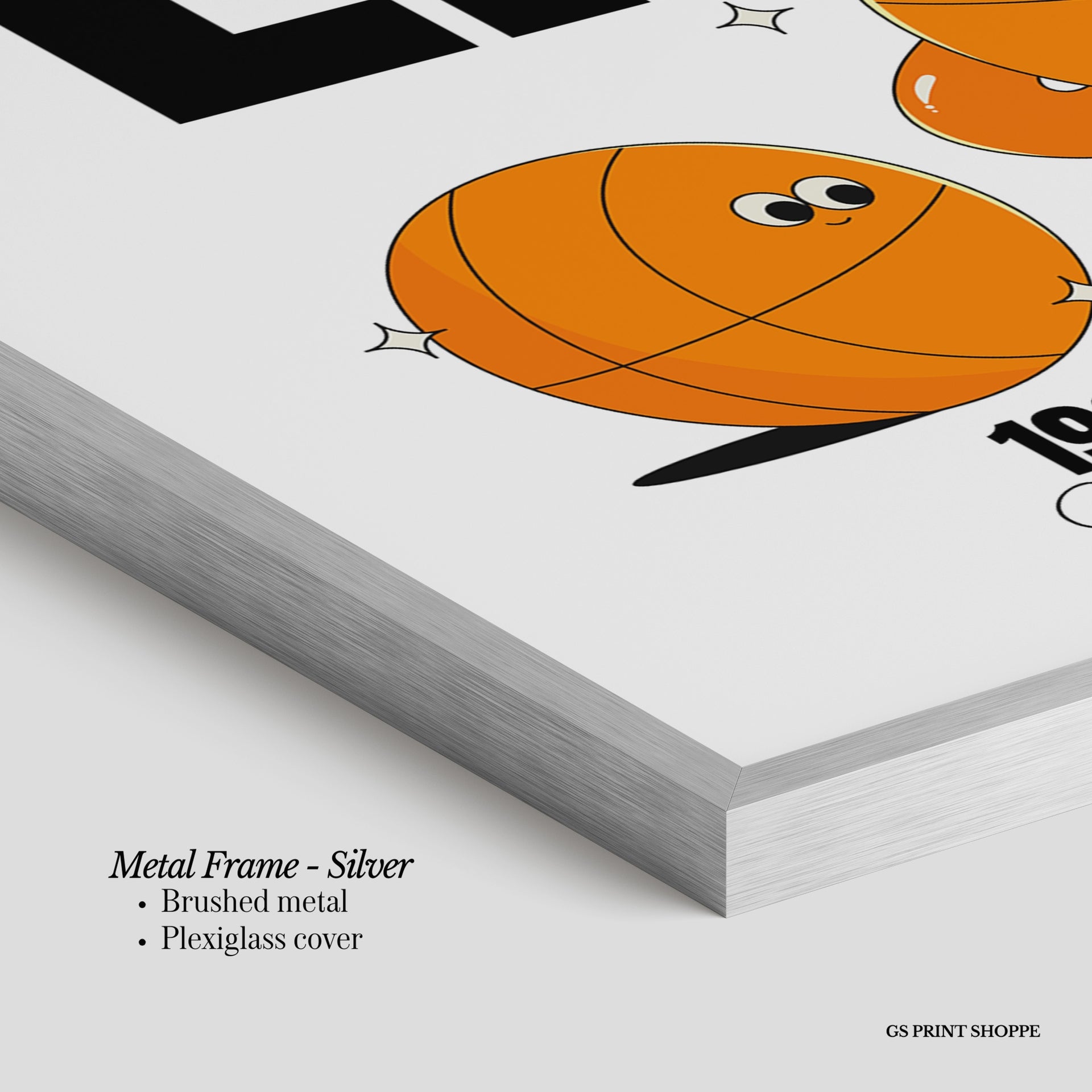 Metal Frame: Sleek and modern, our metal frame is crafted with brushed metal for a polished finish. It comes with durable plexiglass and sturdy metal hangers for horizontal or vertical display.