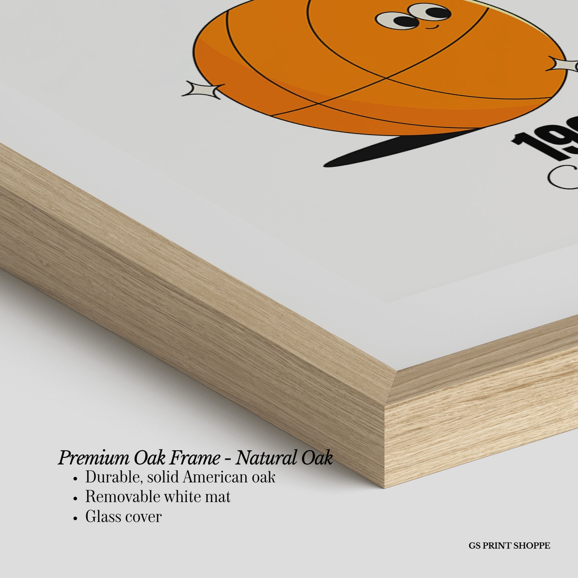 Oak Frame: Our solid oak frame blends durability with timeless appeal. Made from American oak, it features a smooth finish and plexiglass for long-lasting quality.