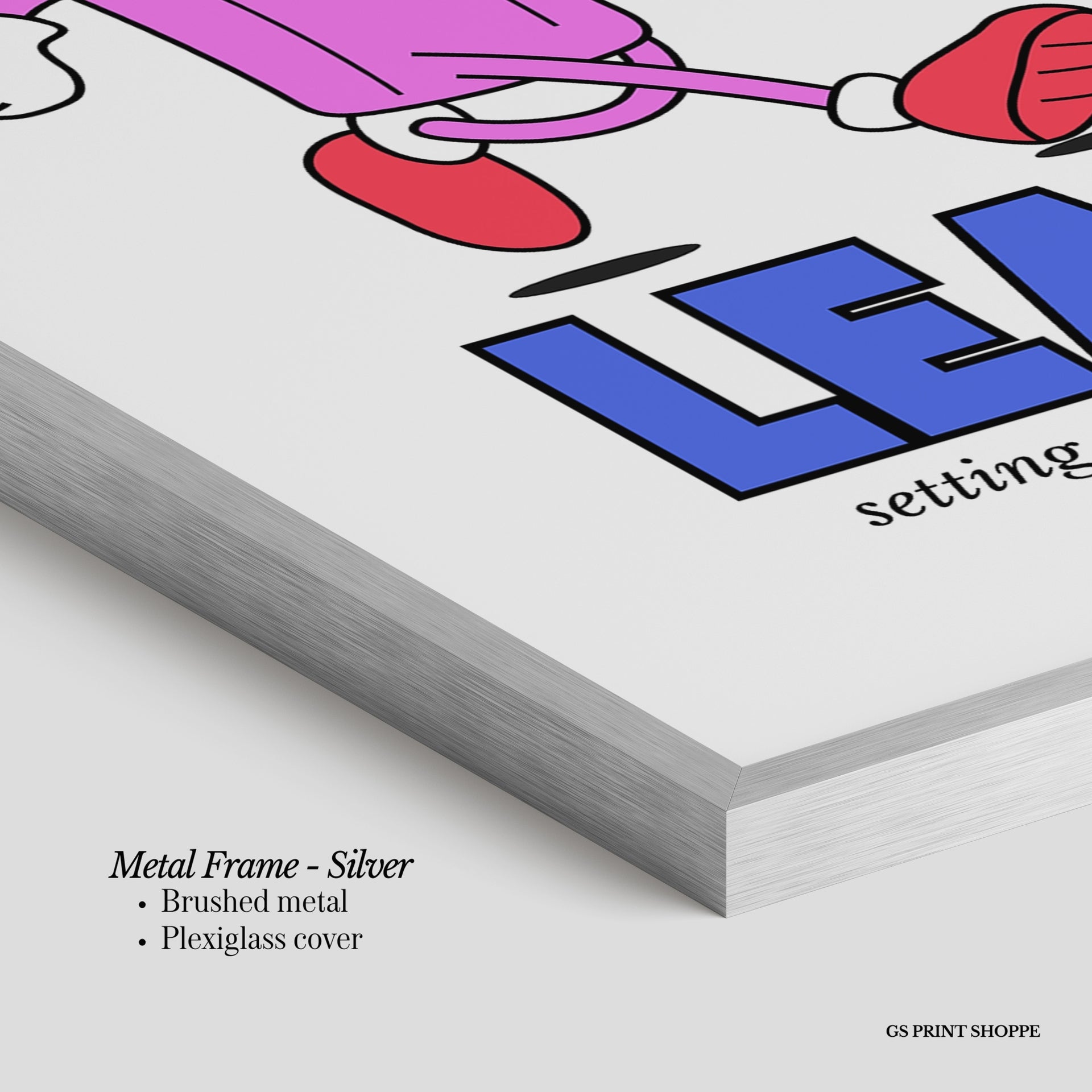Metal Frame: Sleek and modern, our metal frame is crafted with brushed metal for a polished finish. It comes with durable plexiglass and sturdy metal hangers for horizontal or vertical display.