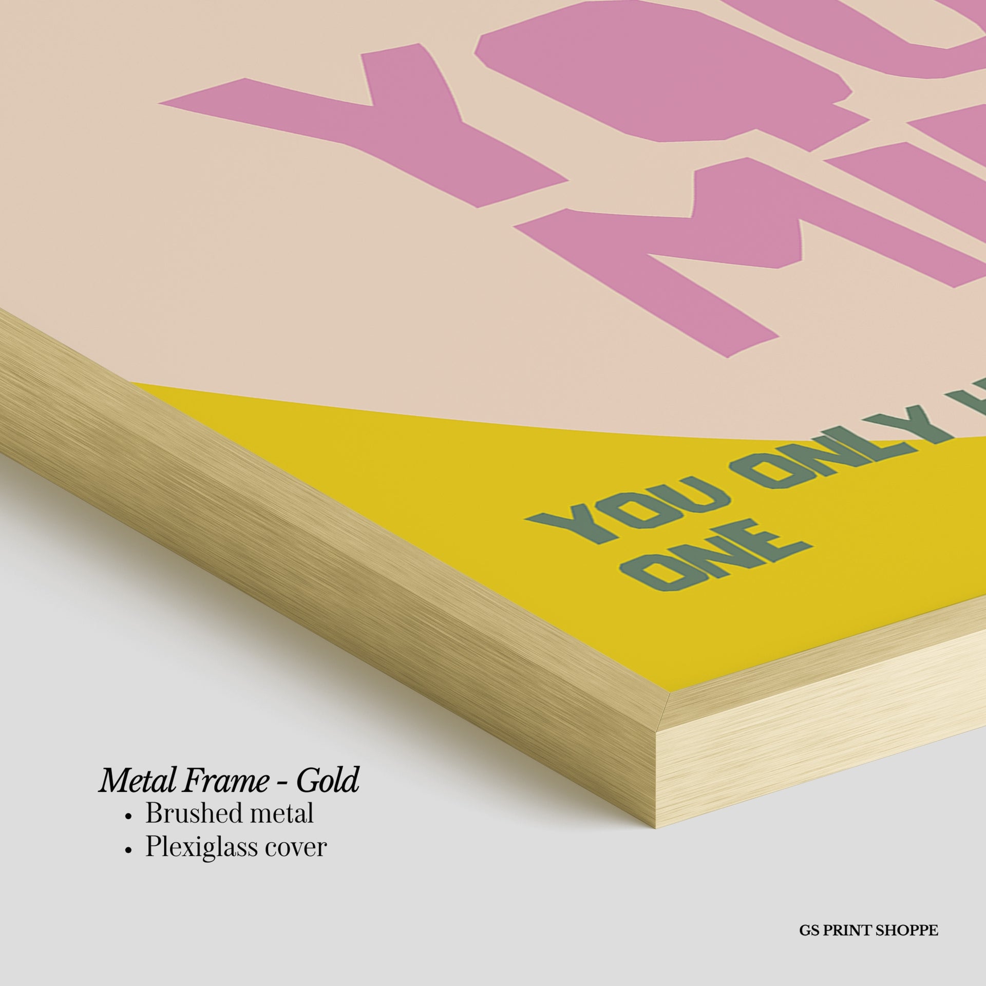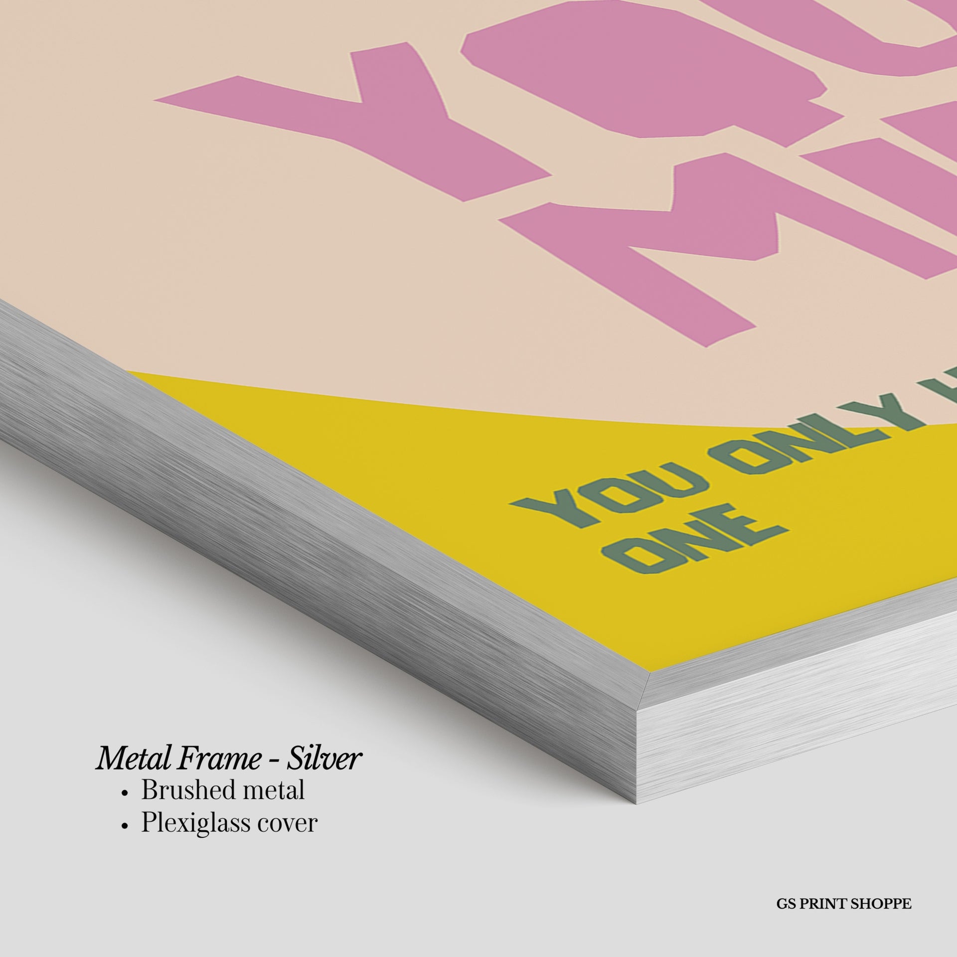 Metal Frame: Sleek and modern, our metal frame is crafted with brushed metal for a polished finish. It comes with durable plexiglass and sturdy metal hangers for horizontal or vertical display.