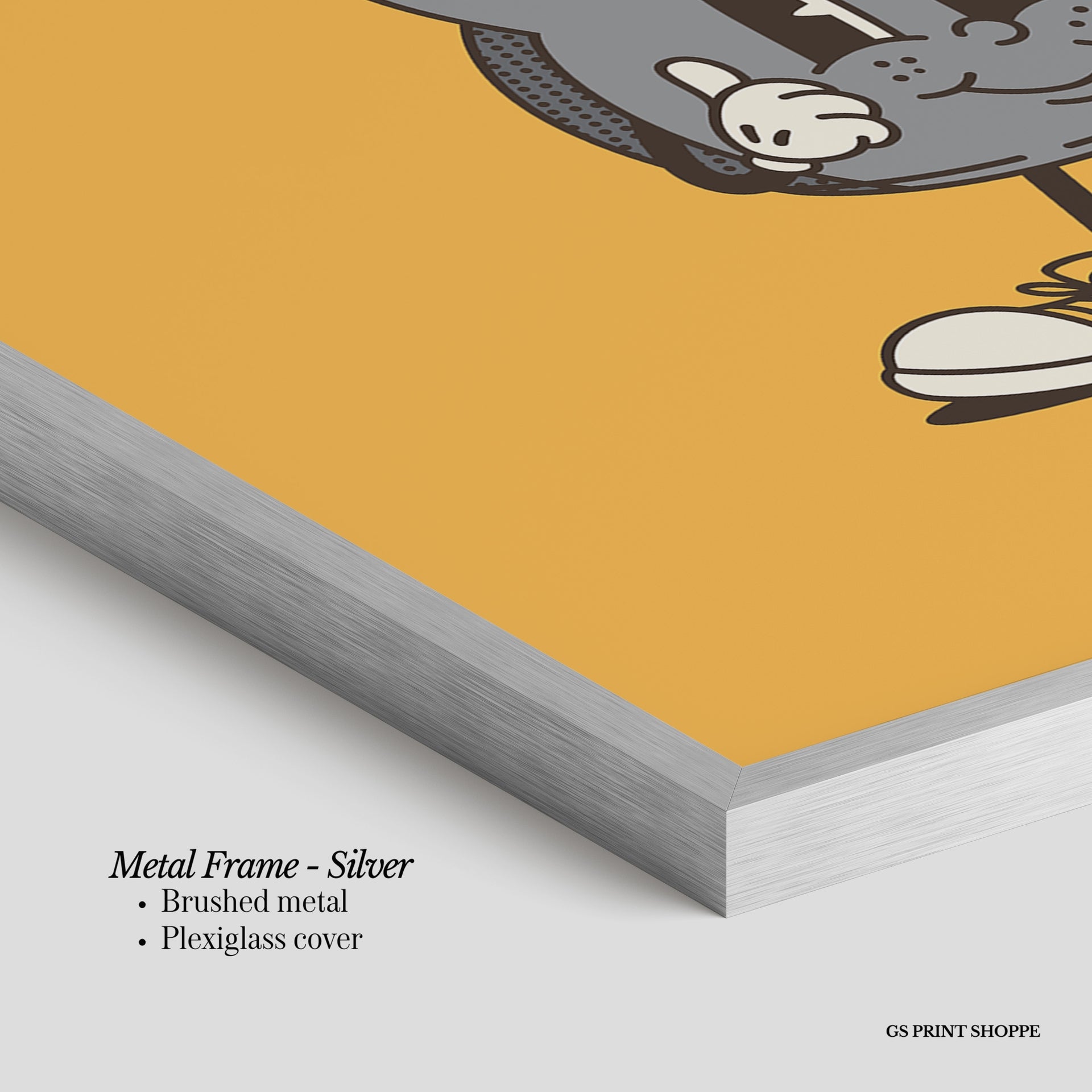 Metal Frame: Sleek and modern, our metal frame is crafted with brushed metal for a polished finish. It comes with durable plexiglass and sturdy metal hangers for horizontal or vertical display.
