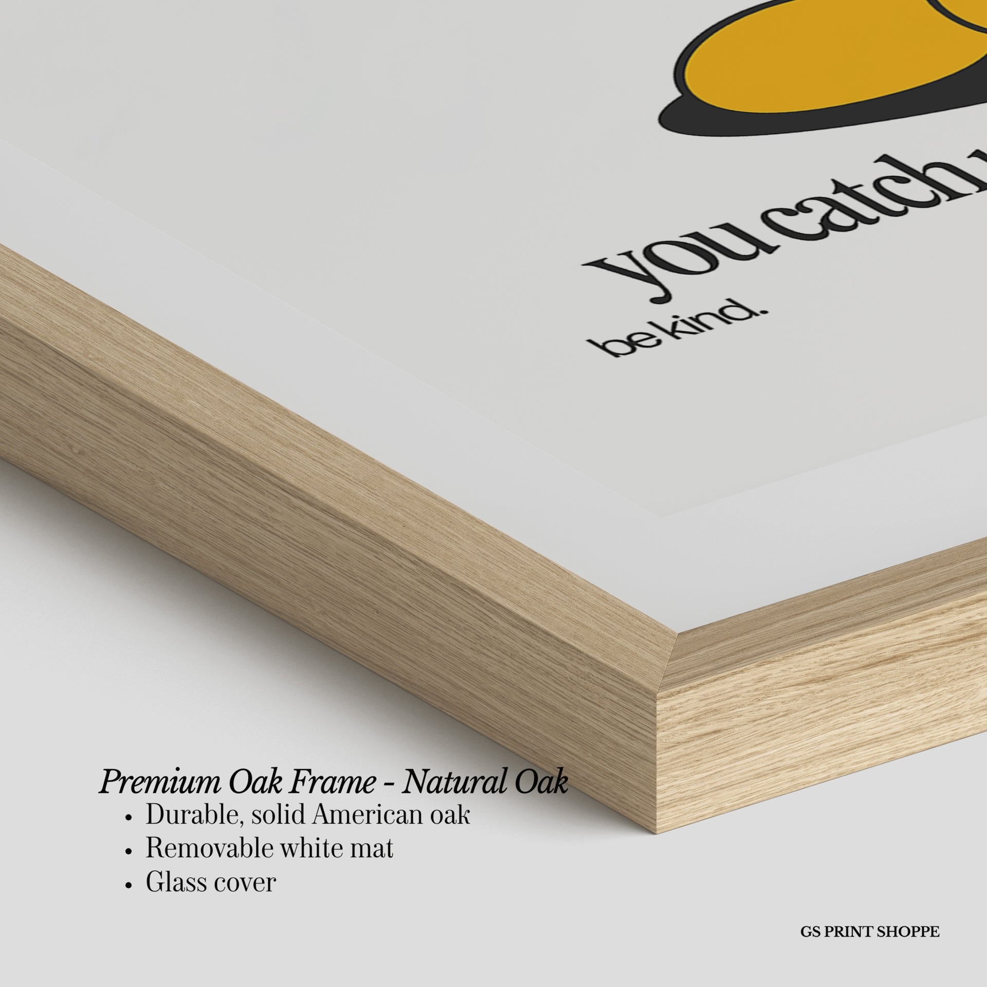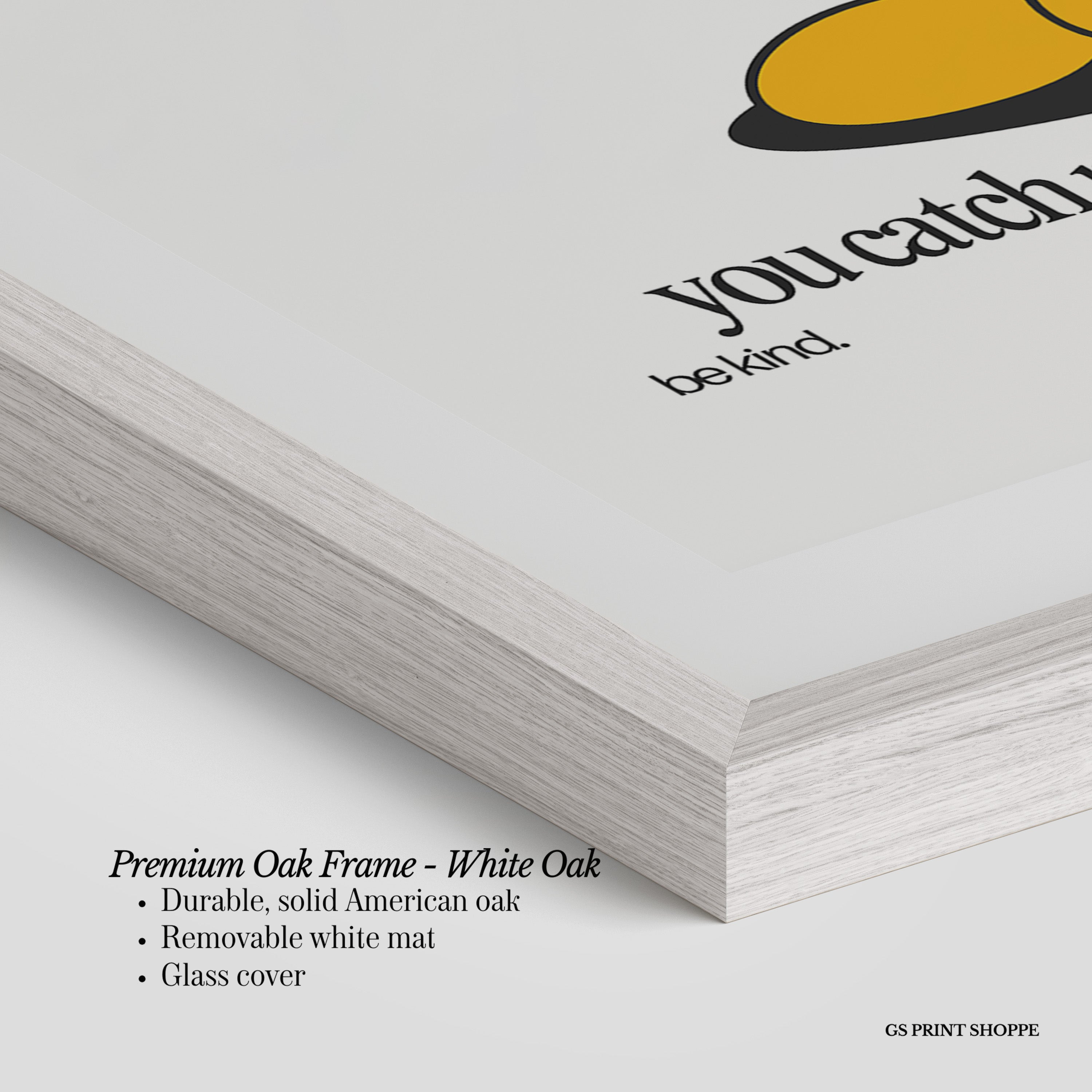 Premium Oak Frame: Our premium oak frame is crafted from solid American oak, offering a warm, natural feel with a high-end finish. We complete this elevated offering with a bright white removable mat and real glass for a versatile and polished look.