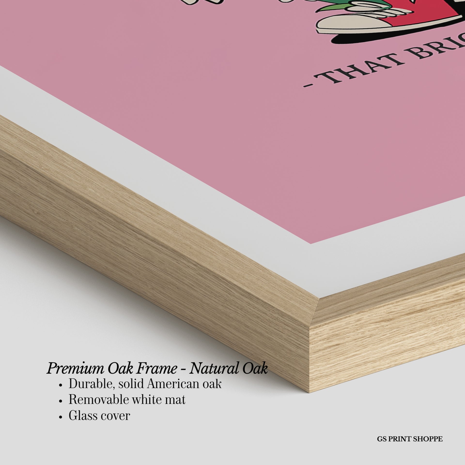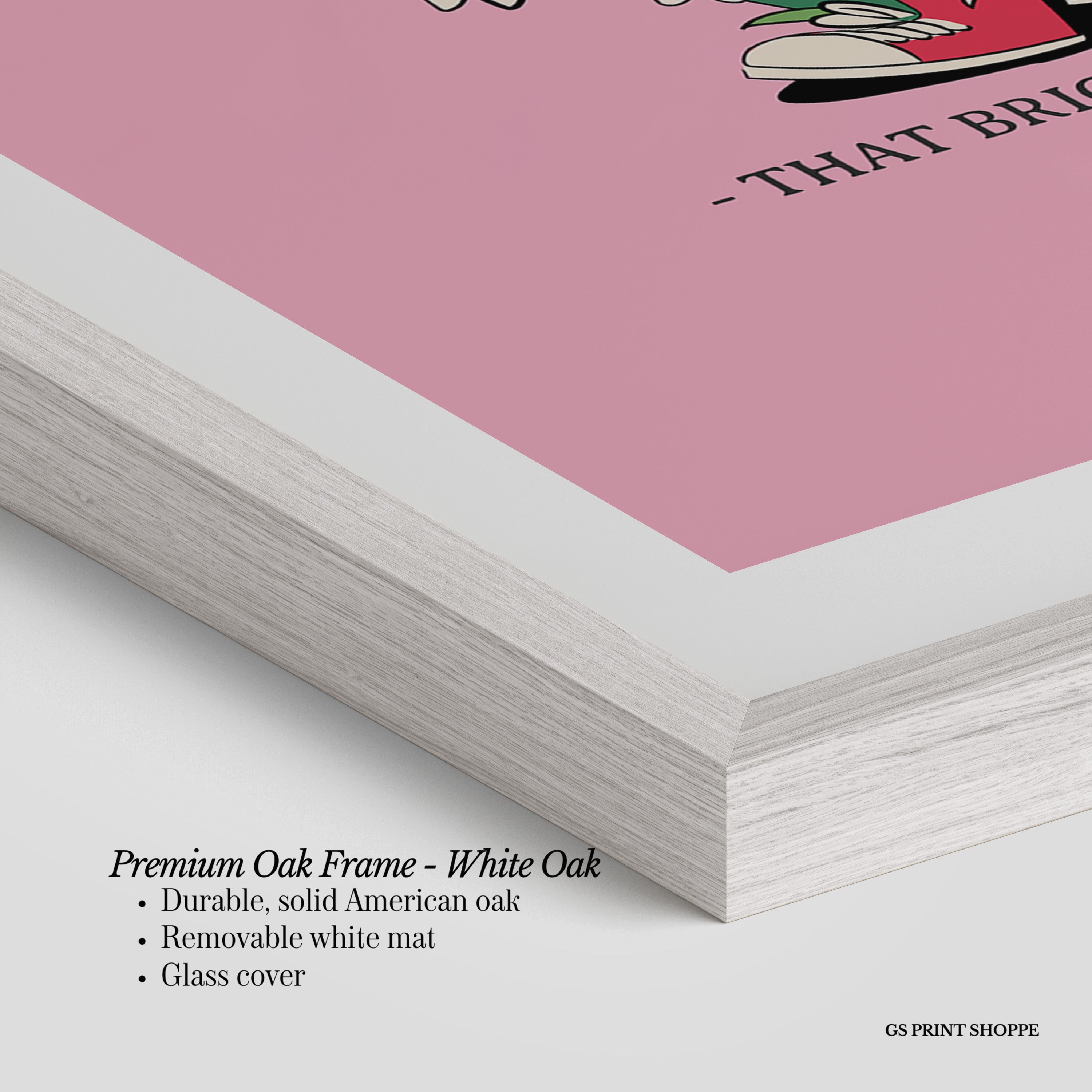 Premium Oak Frame: Our premium oak frame is crafted from solid American oak, offering a warm, natural feel with a high-end finish. We complete this elevated offering with a bright white removable mat and real glass for a versatile and polished look.