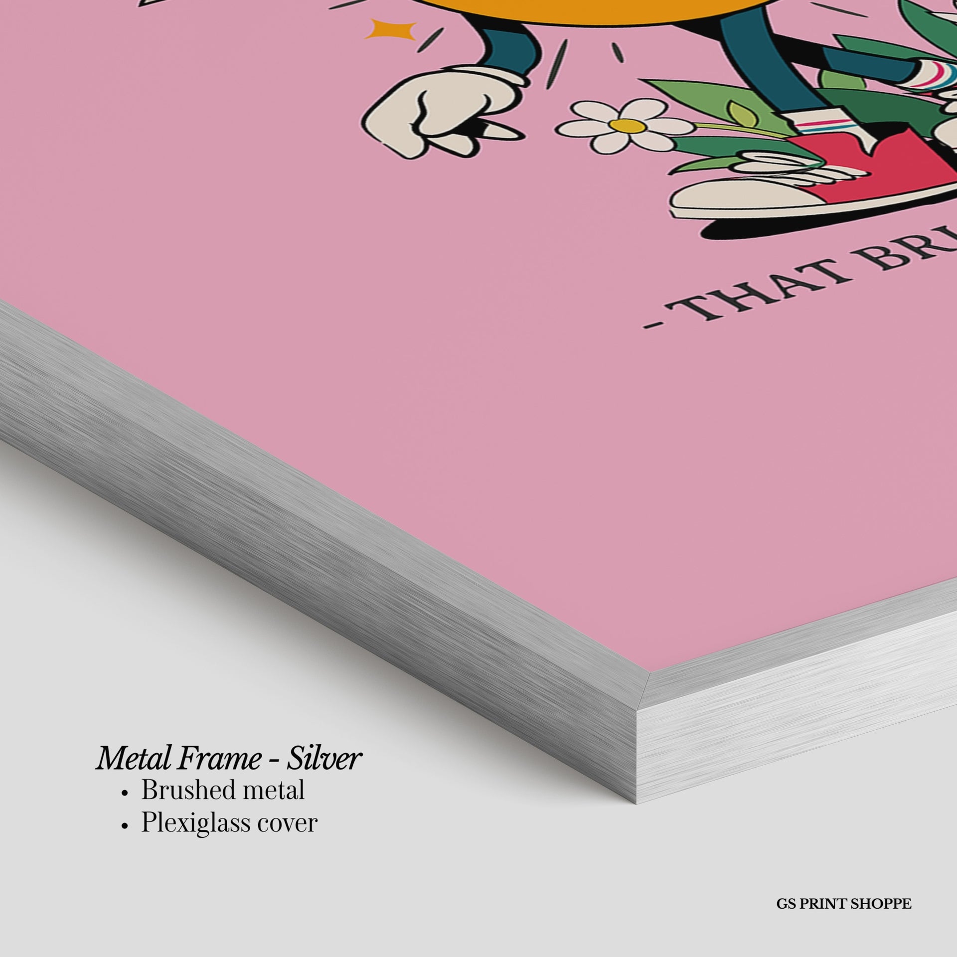 Metal Frame: Sleek and modern, our metal frame is crafted with brushed metal for a polished finish. It comes with durable plexiglass and sturdy metal hangers for horizontal or vertical display.