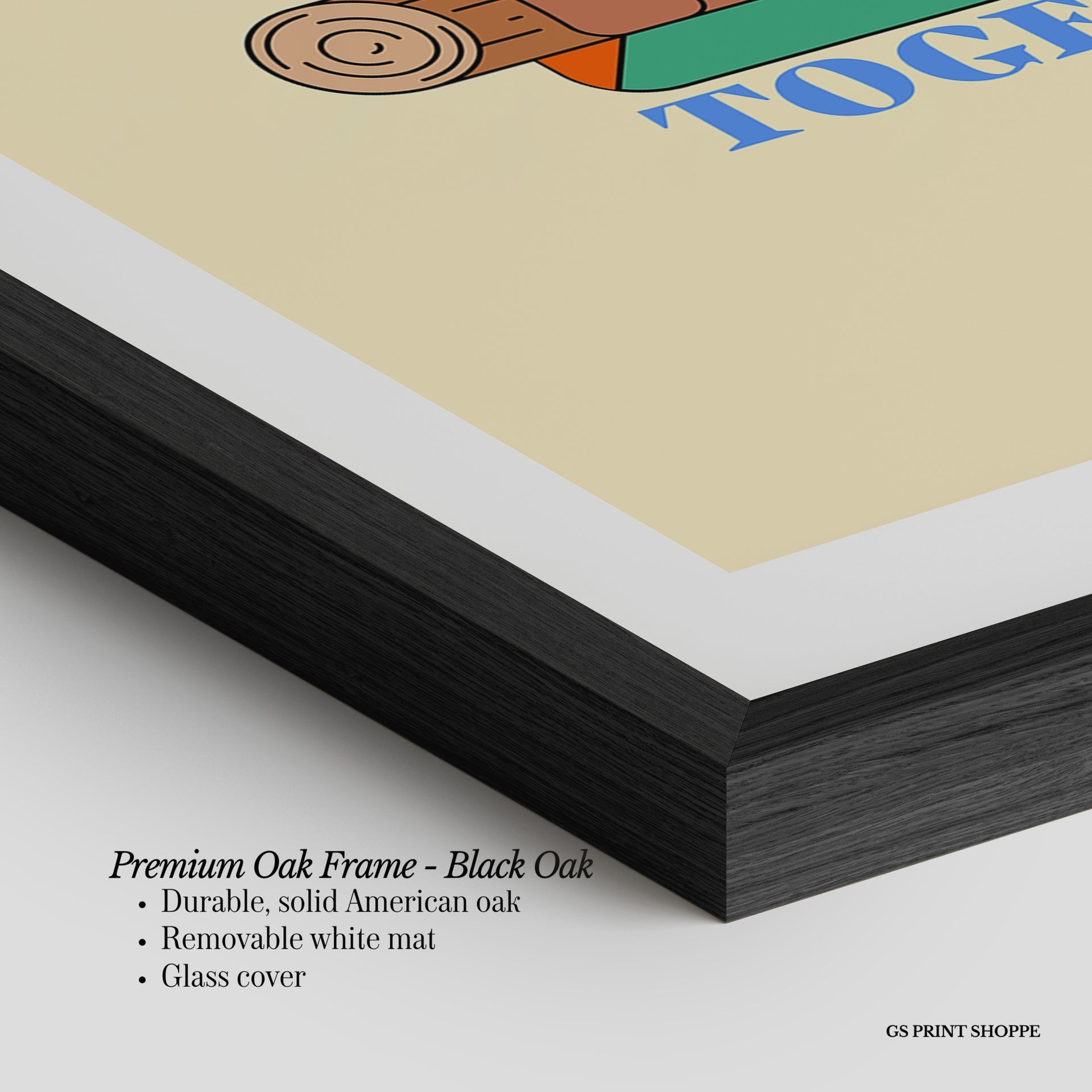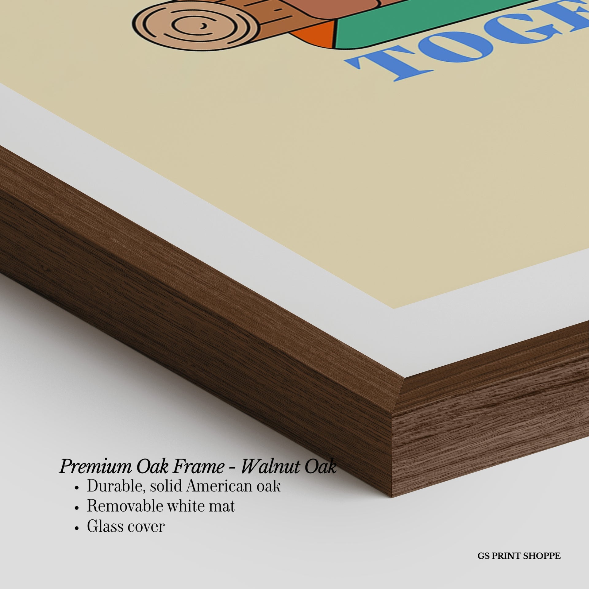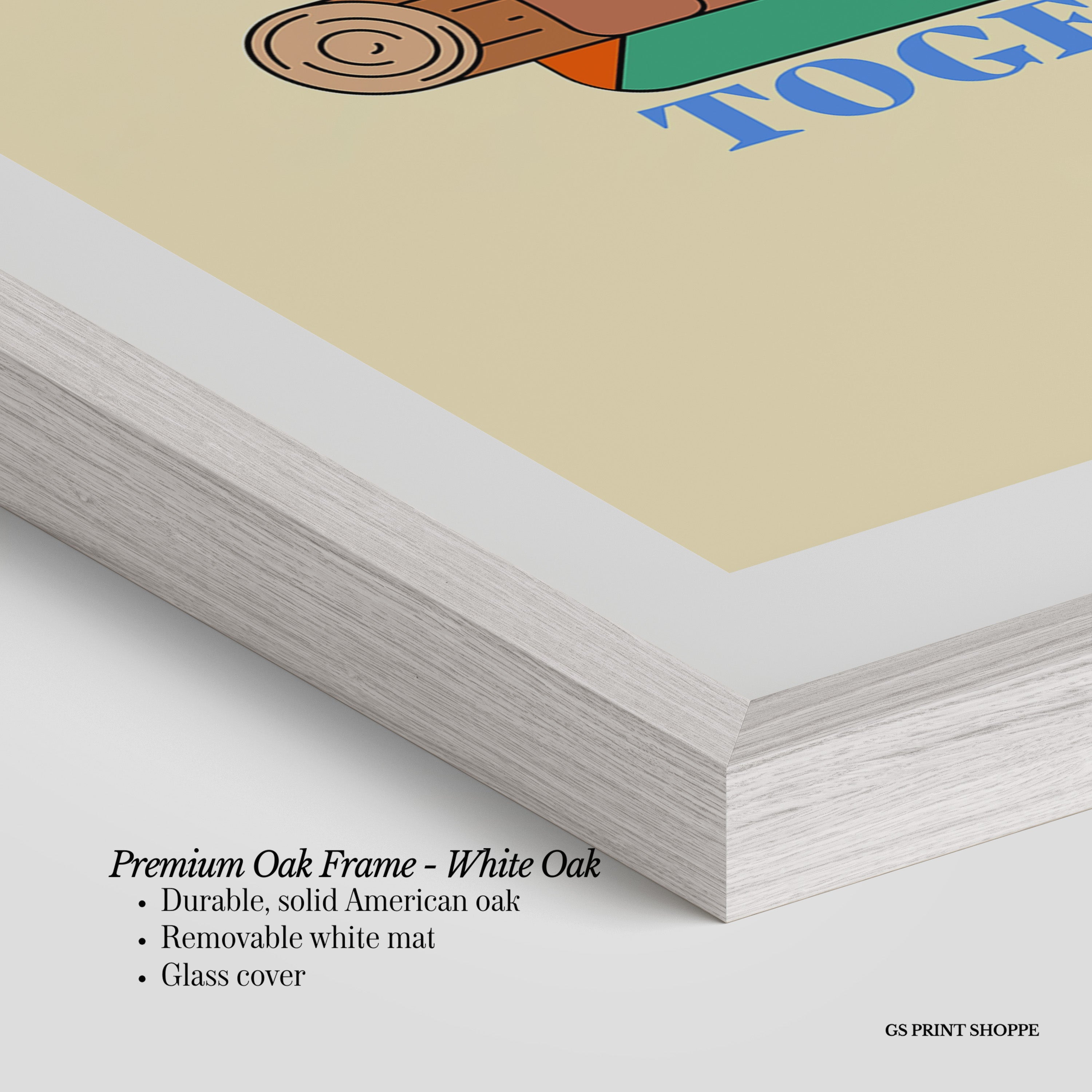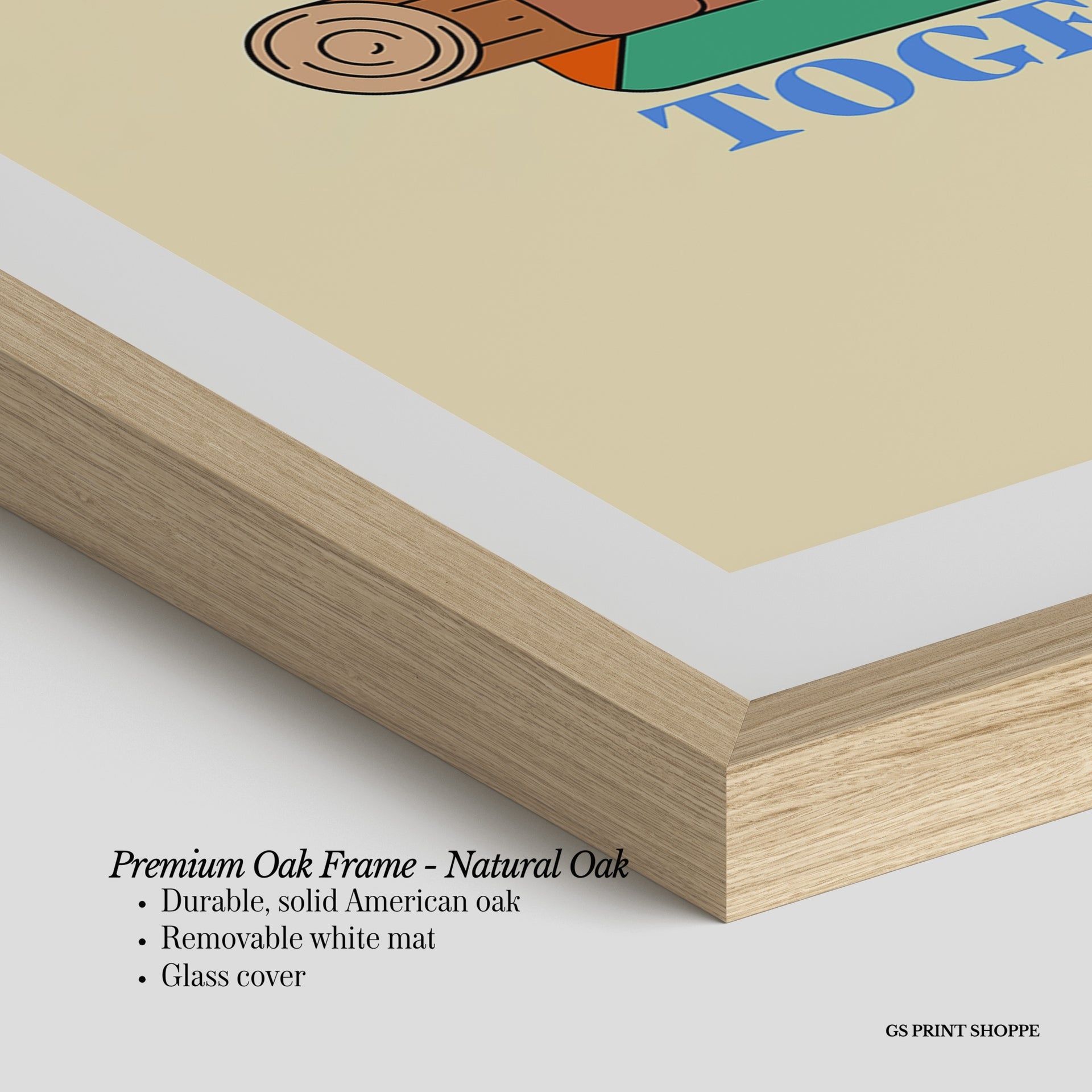 Premium Oak Frame: Our premium oak frame is crafted from solid American oak, offering a warm, natural feel with a high-end finish. We complete this elevated offering with a bright white removable mat and real glass for a versatile and polished look.