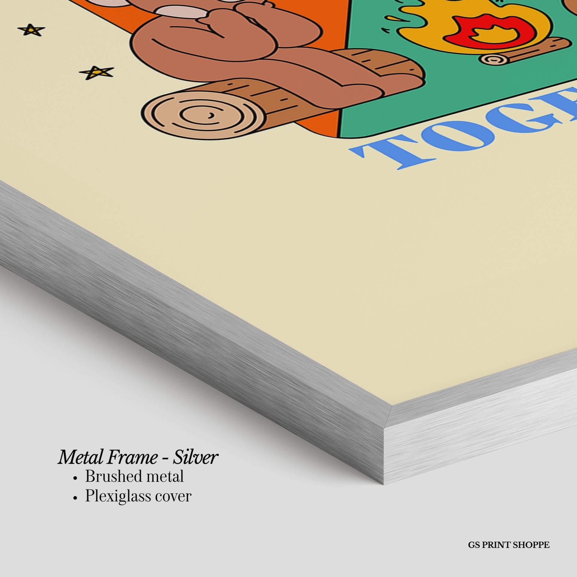 Metal Frame: Sleek and modern, our metal frame is crafted with brushed metal for a polished finish. It comes with durable plexiglass and sturdy metal hangers for horizontal or vertical display.
